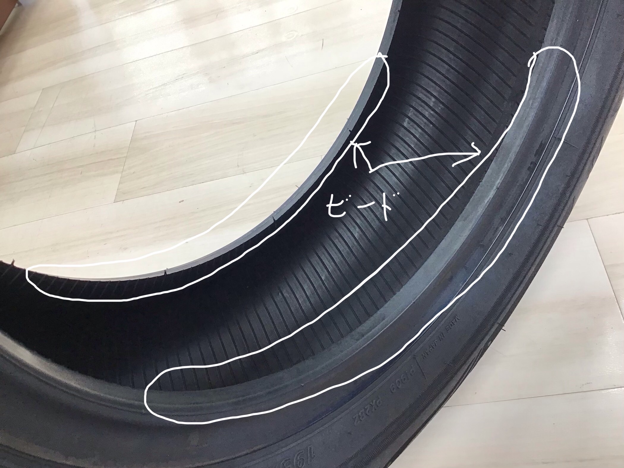 タイヤをホイールに組み込むと、タイヤのビード部と、