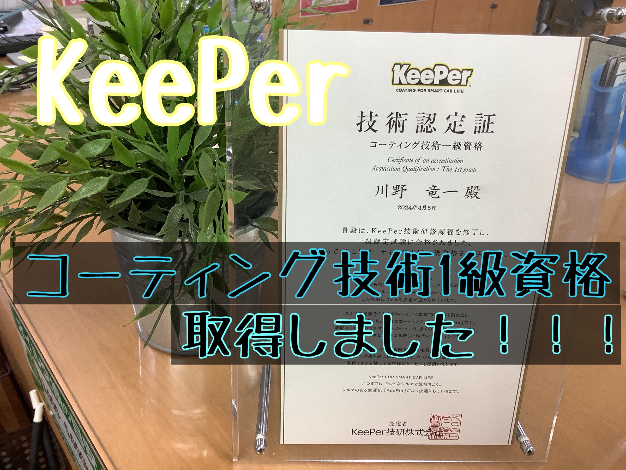 この度、コーティング技術1級資格取得いたしました!!!