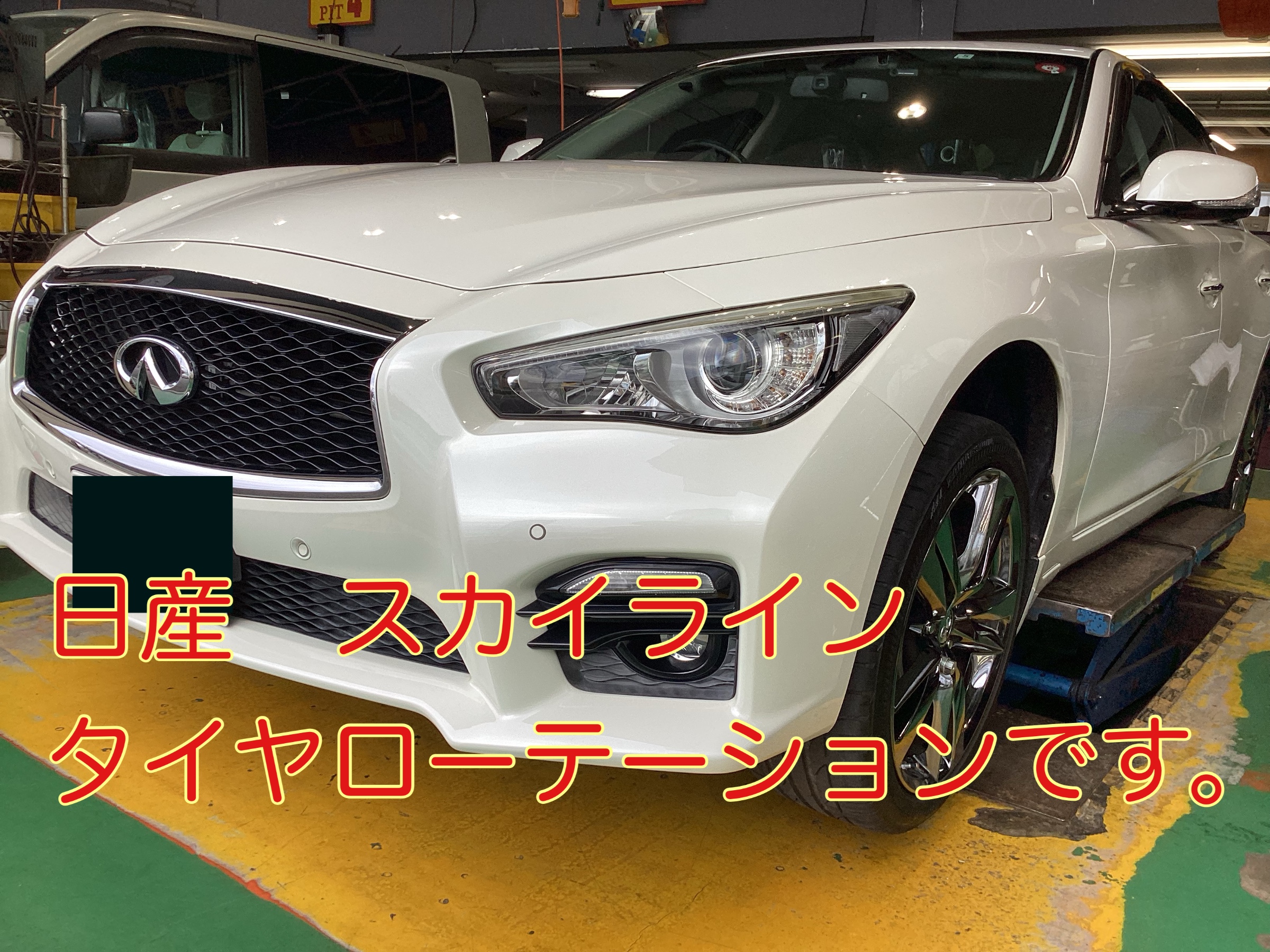 日産 スカイライン タイヤローテーションのご紹介です。