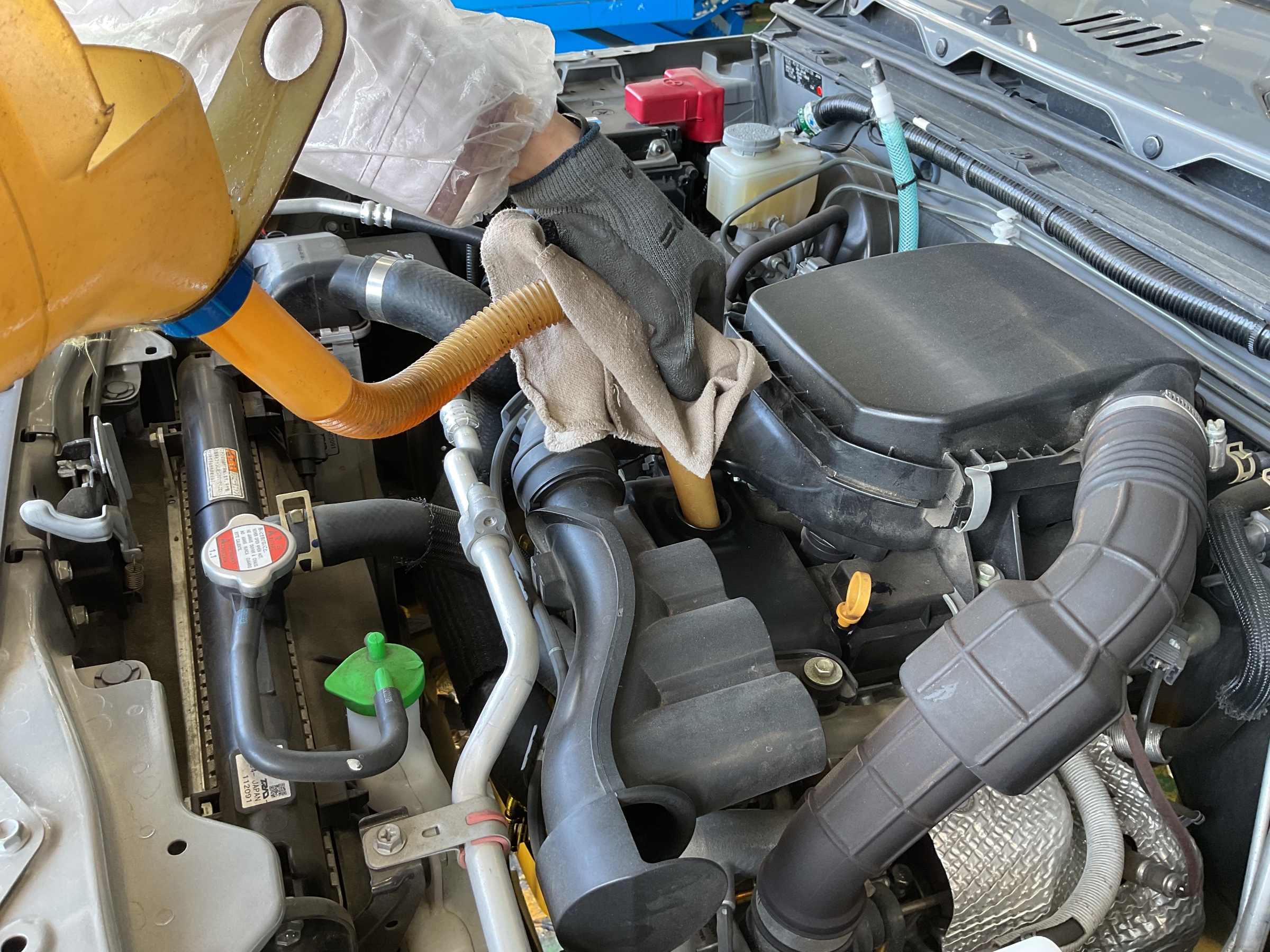 古いオイルが抜け終わったら新しいオイルを入れていきます!