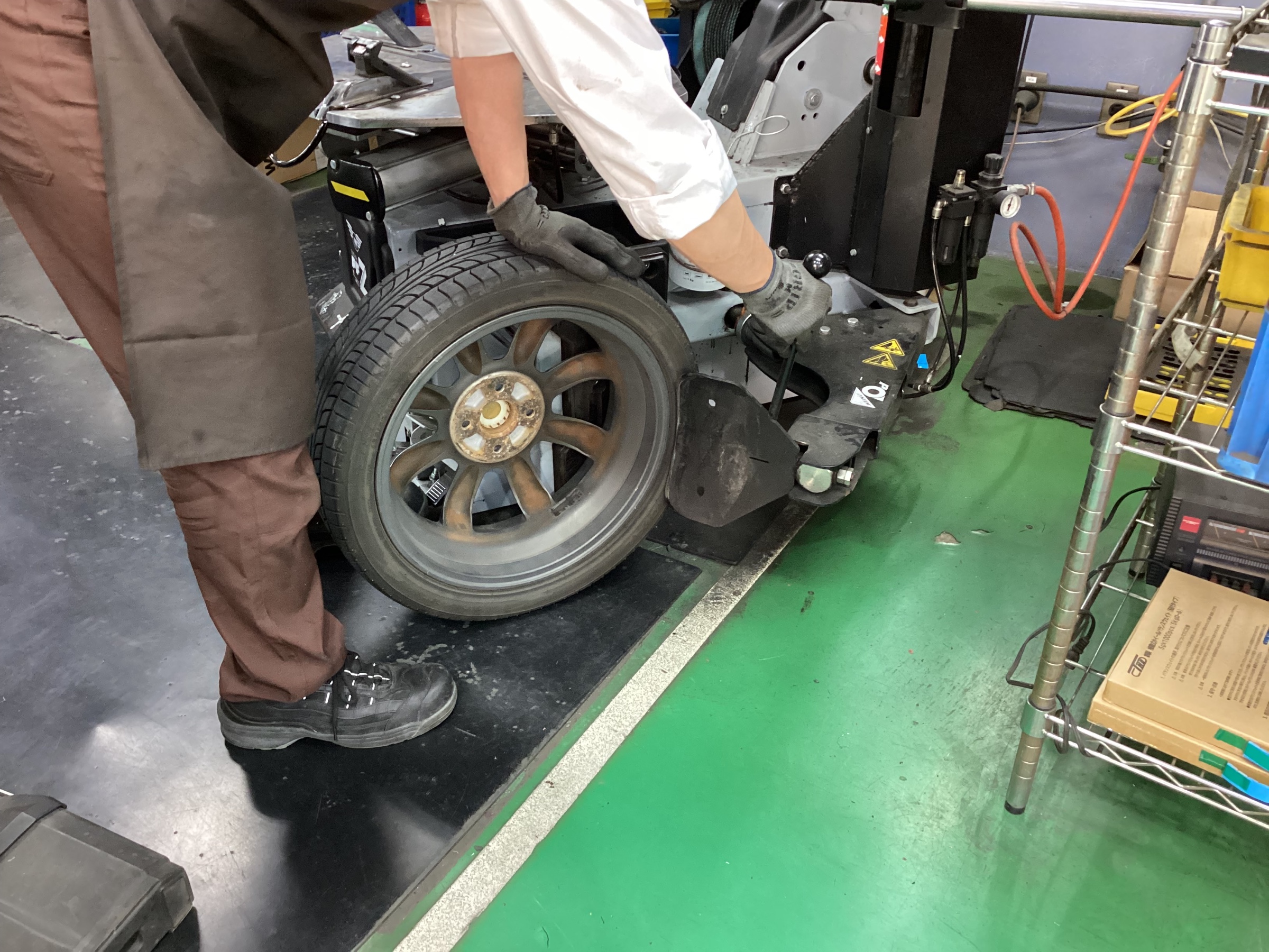 新品のタイヤを組んでいきます。