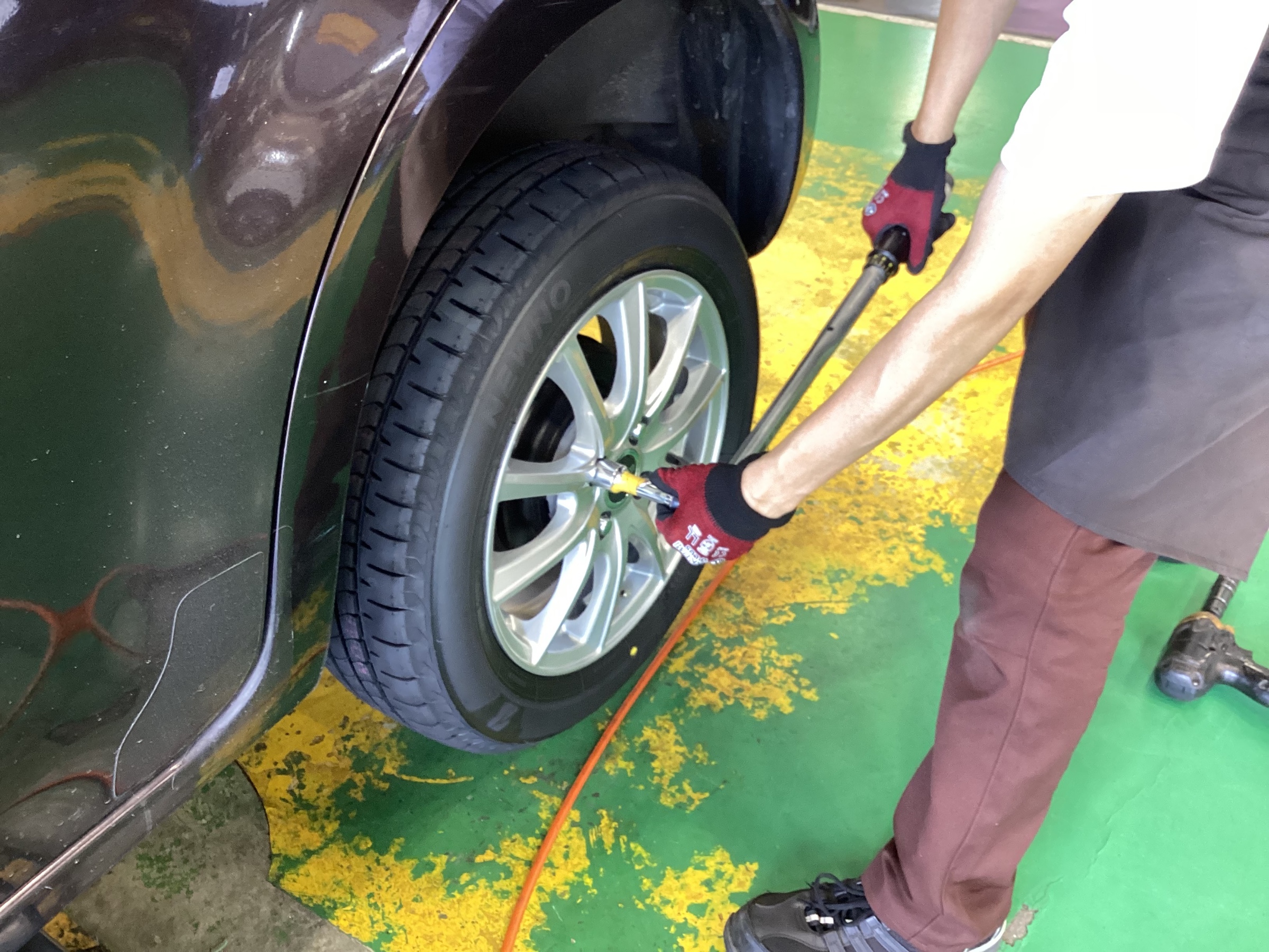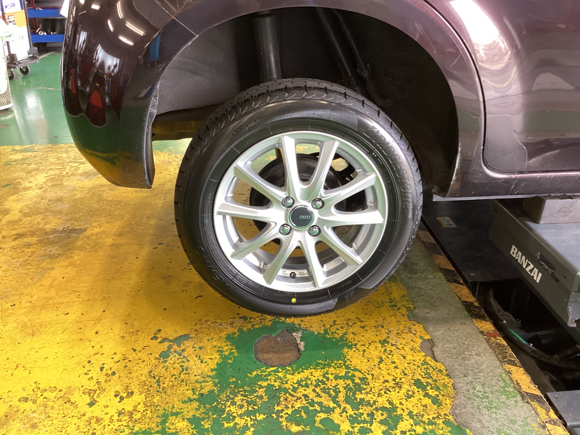 PLEOのホイールを取り付けていきます。