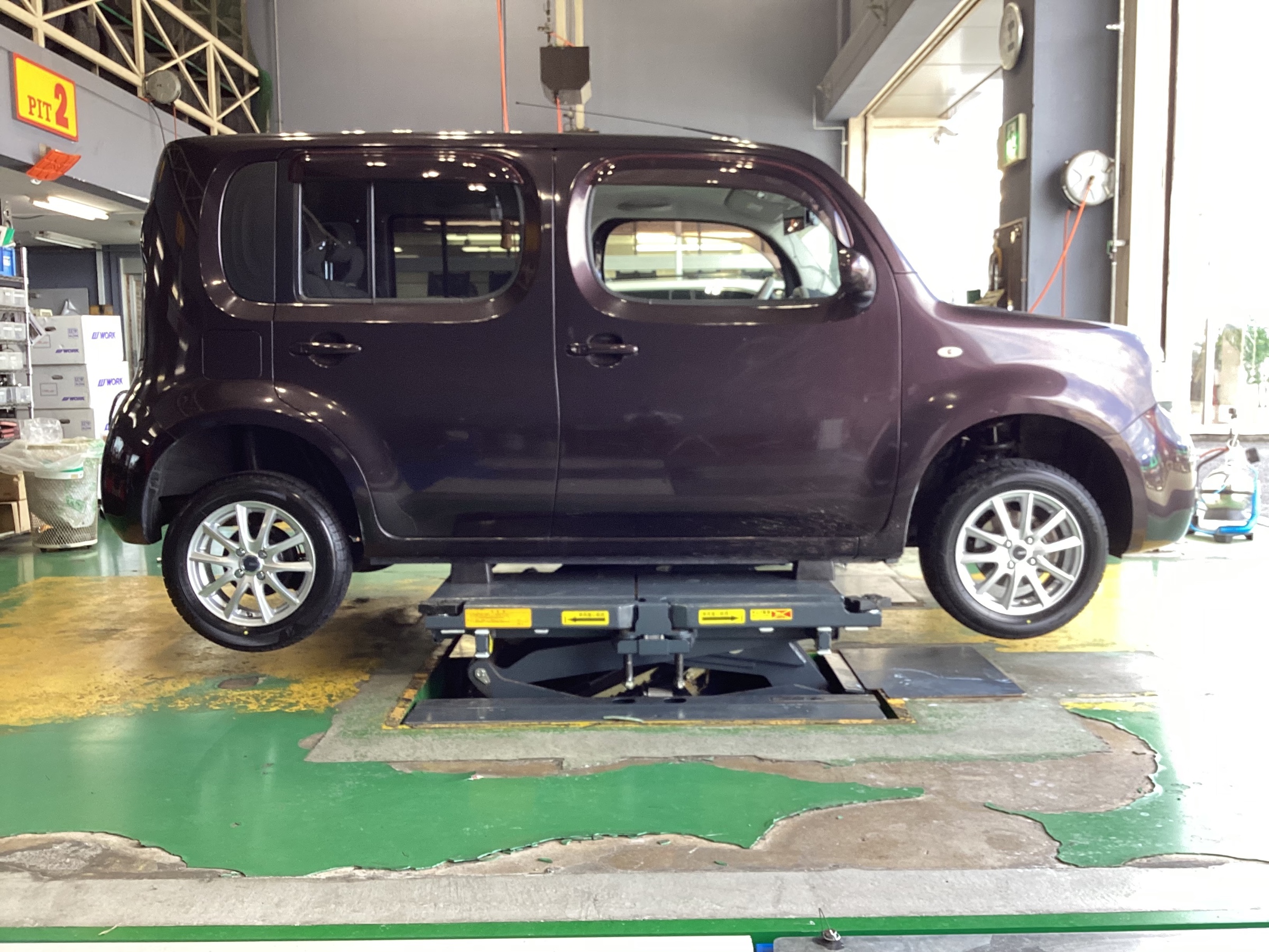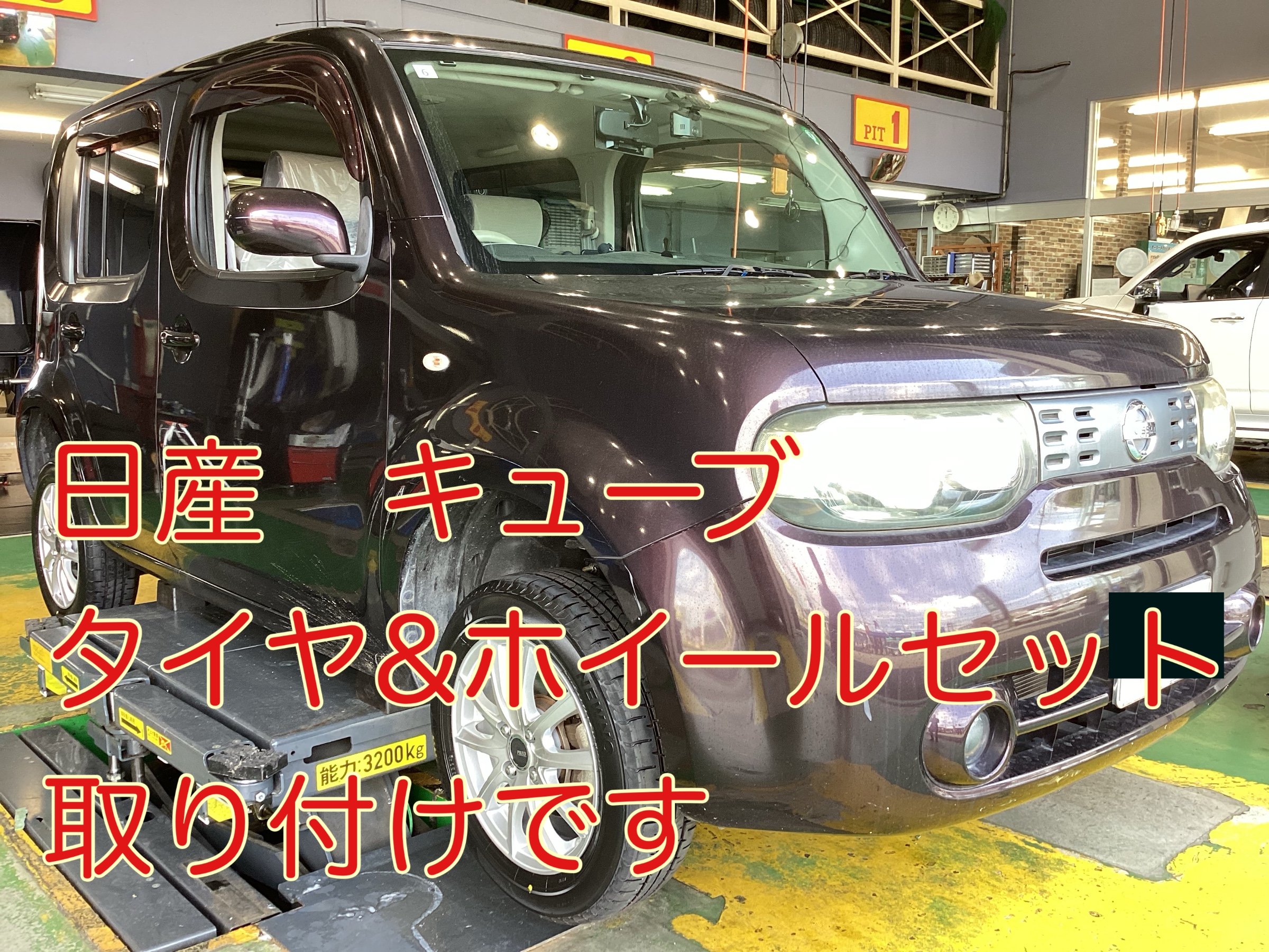 日産 キューブ タイヤ&ホイール交換です。