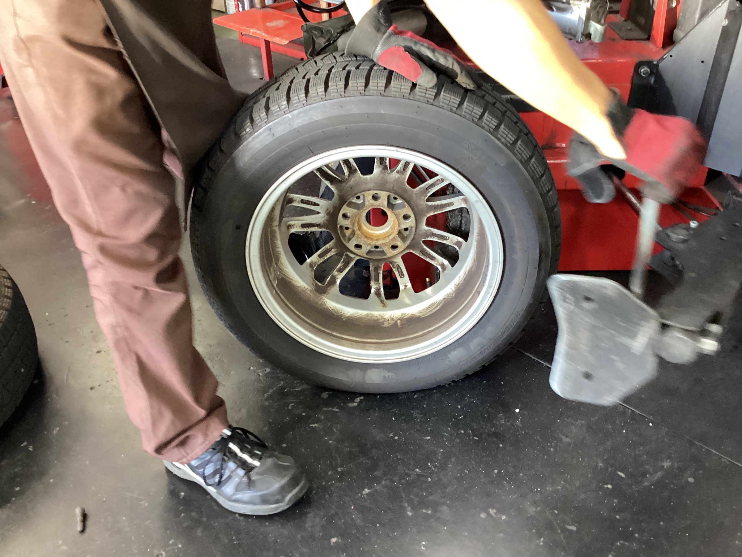 新しく購入された冬タイヤの取り付けです。