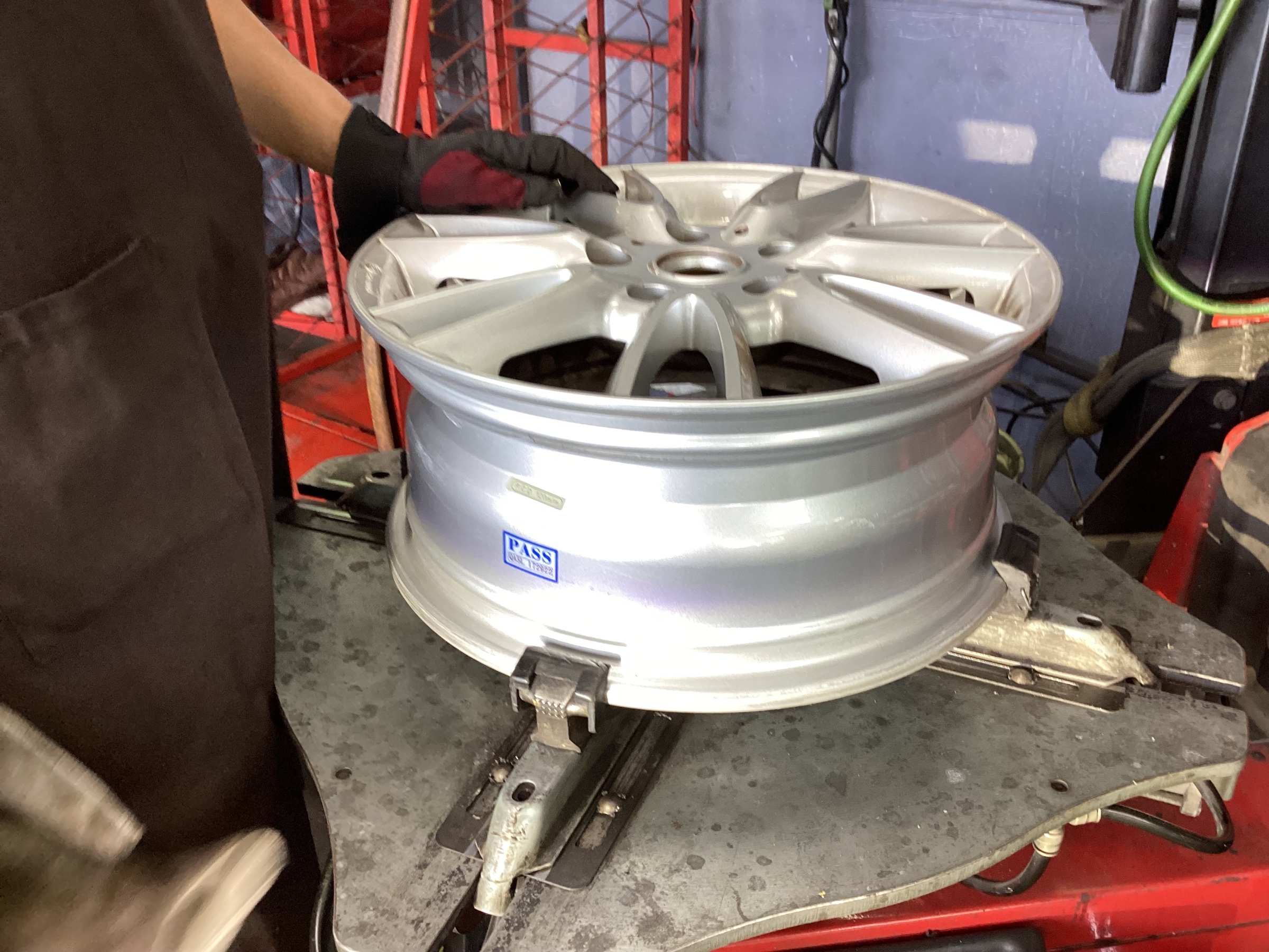 新しいタイヤを組んでいきます。