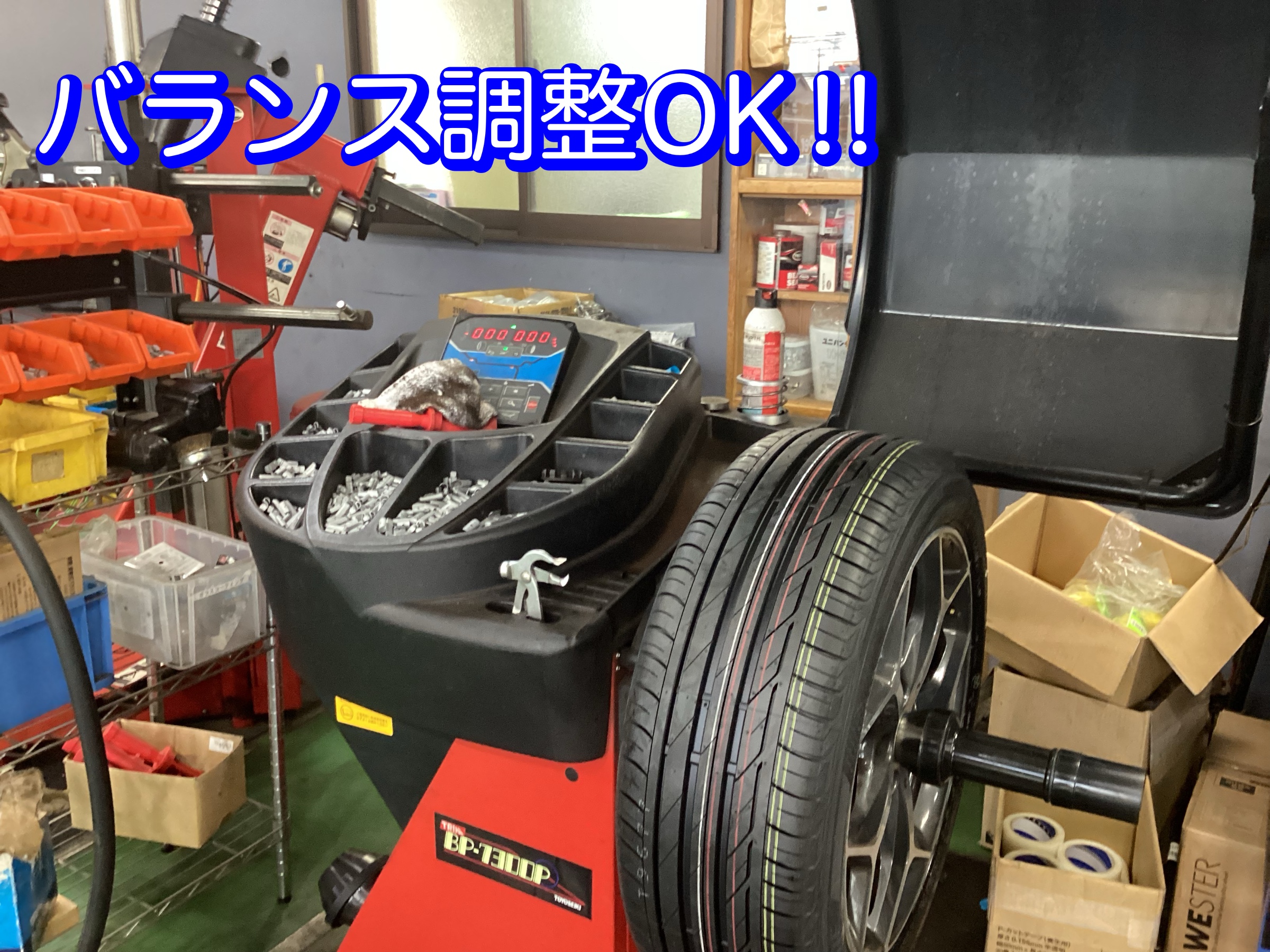 ホイールバランスを調整しています。