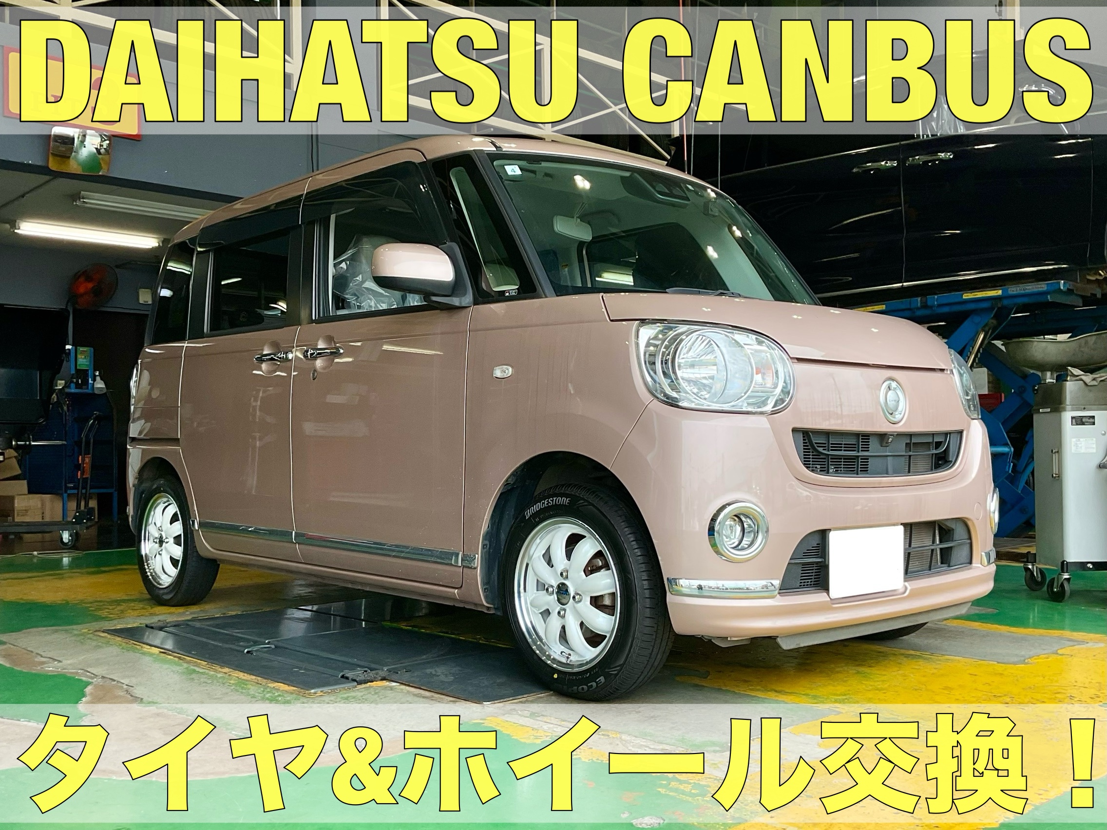 ダイハツキャンバスのタイヤ交換、ホイール交換作業です!