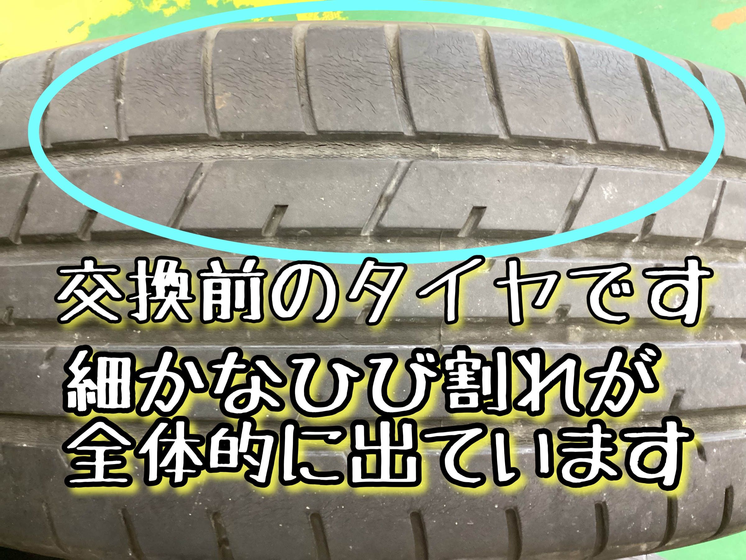 交換前のタイヤは年数経過によるひび割れが目立つ状態でした