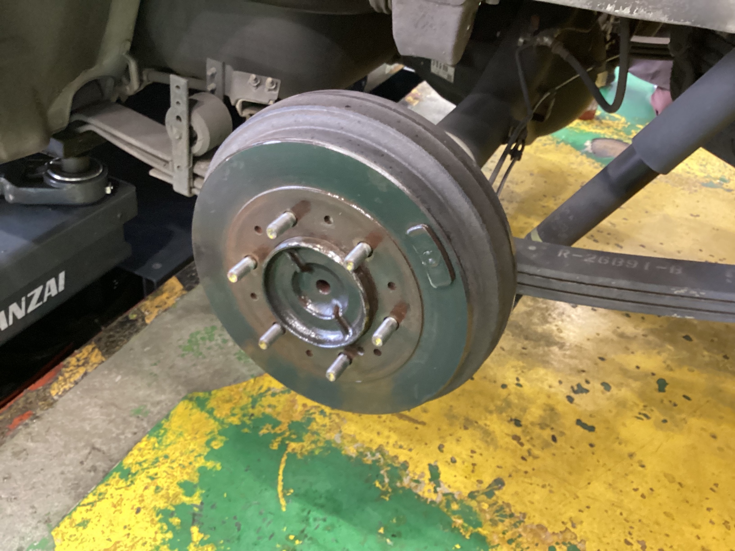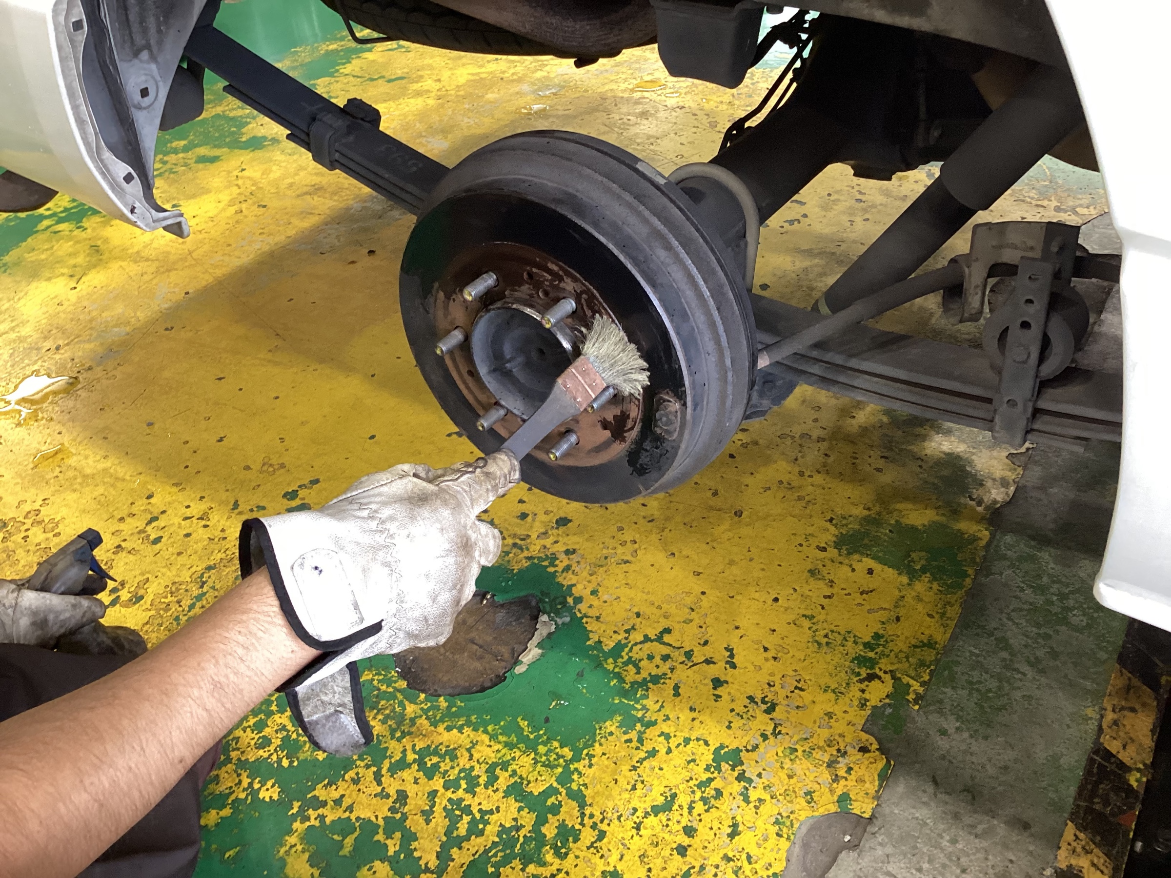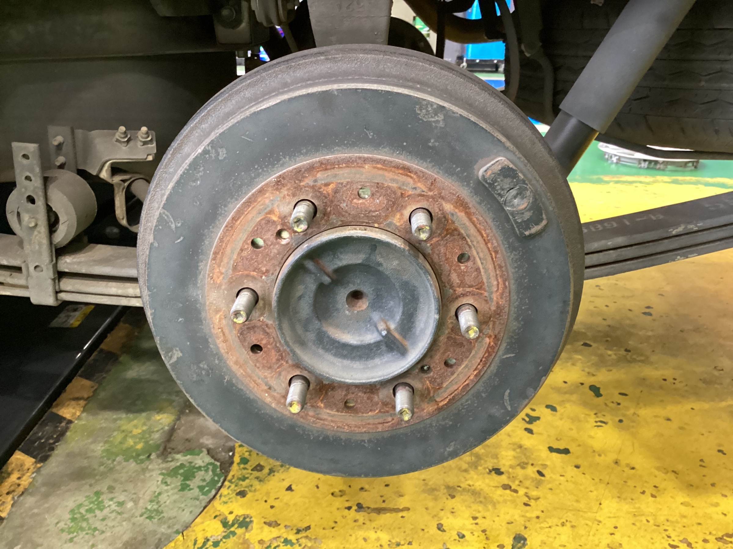 タイヤを外したところ、ハブにサビがあったため防錆施工させていただきました。