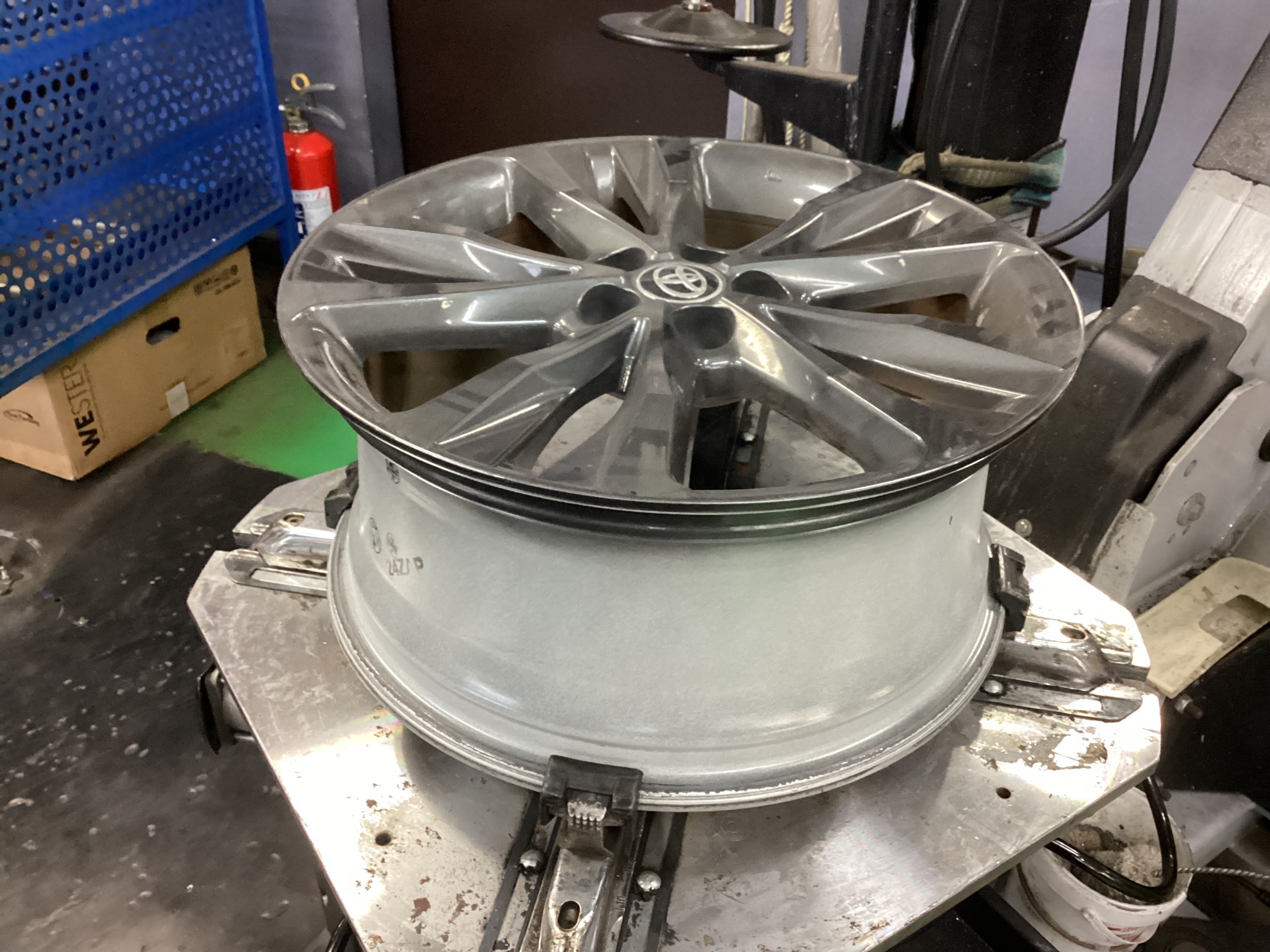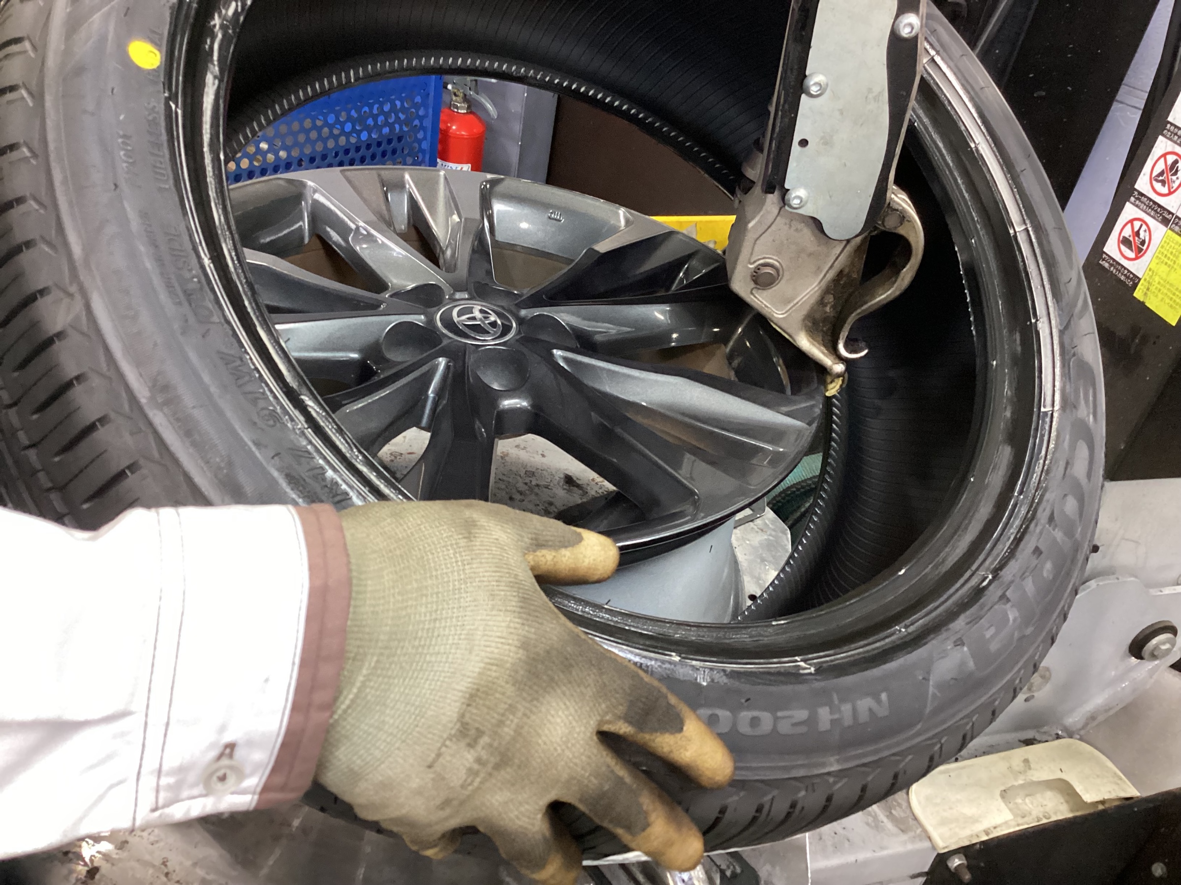 綺麗にしたら新しいタイヤを取り付けます。
