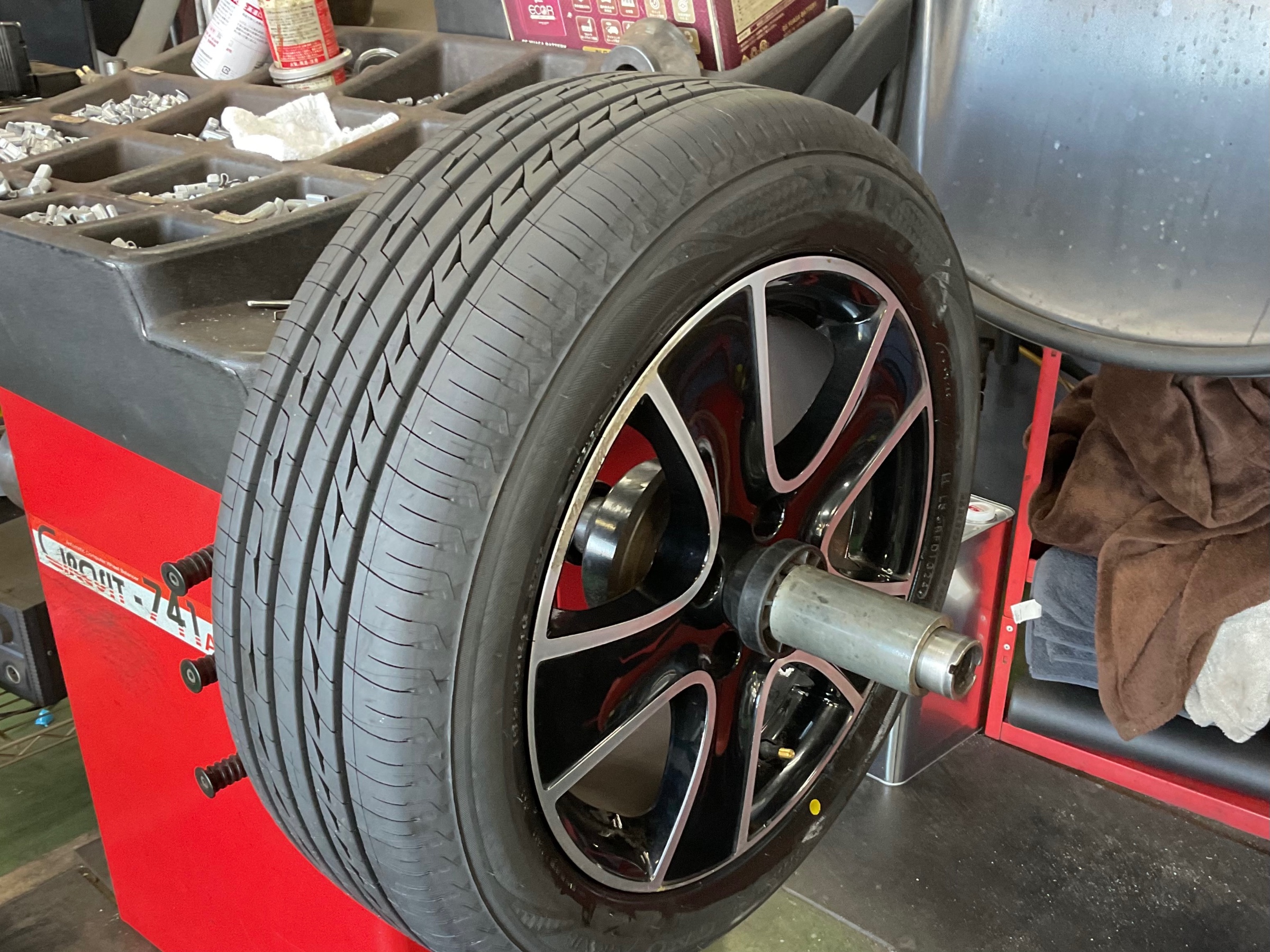 バランスをとって、センターフィットで取り付け、最後にタイヤワックスを塗って作業完了です!