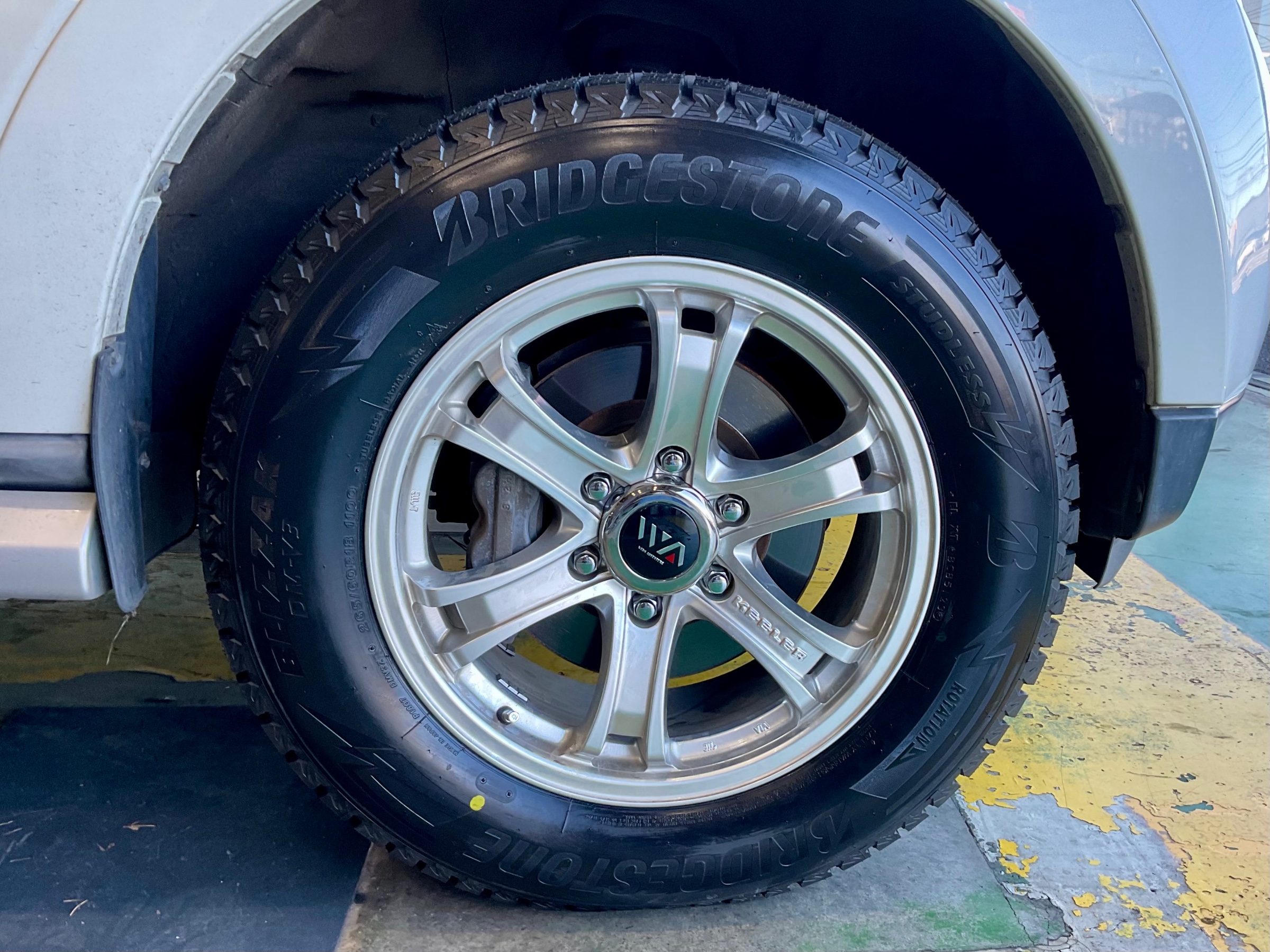 三菱パジェロのスタッドレスタイヤ取り付け作業です!