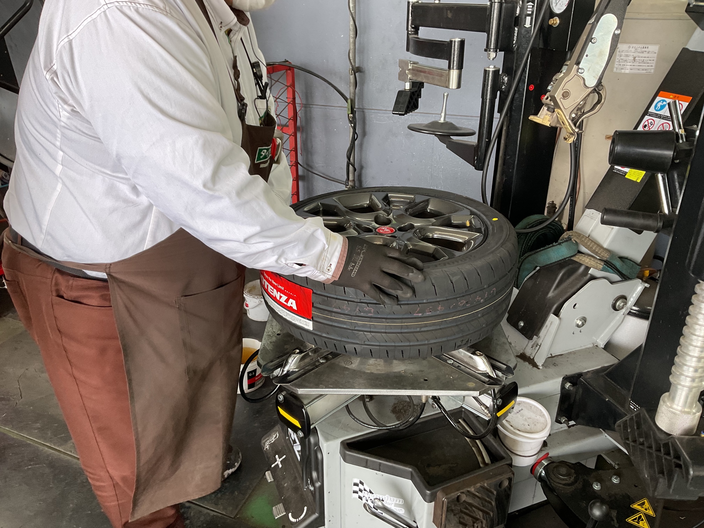 なかなか硬いタイヤですが、歴20年の布川スタッフが組んでいきます!