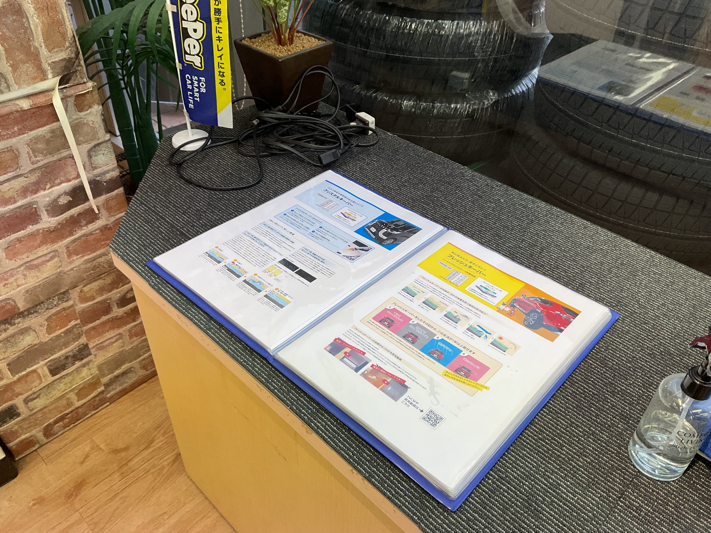 ホイールコーティングなどなど色々ご覧いただける展示になっております。