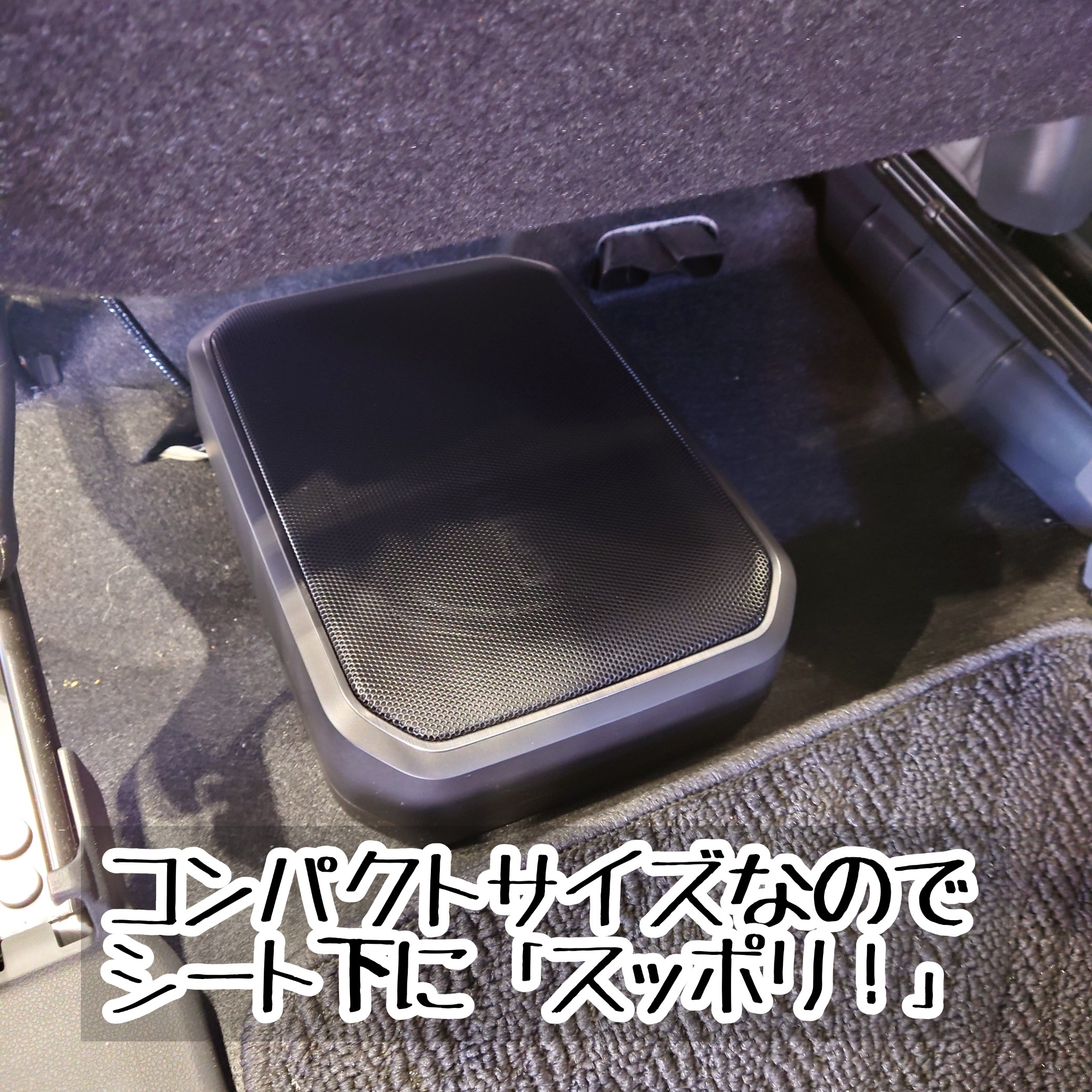 コンパクトサイズなので、シート下に収めることが出来るので、トランクの収納スペースを犠牲にせず取り付け出来ちゃいます!