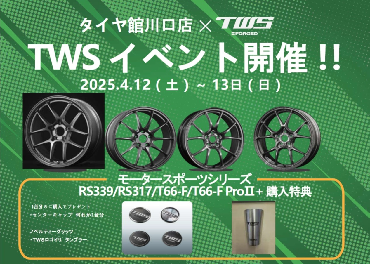 アルミホイールメーカーの【TWS】xタイヤ館川口のコラボイベントを開催します。