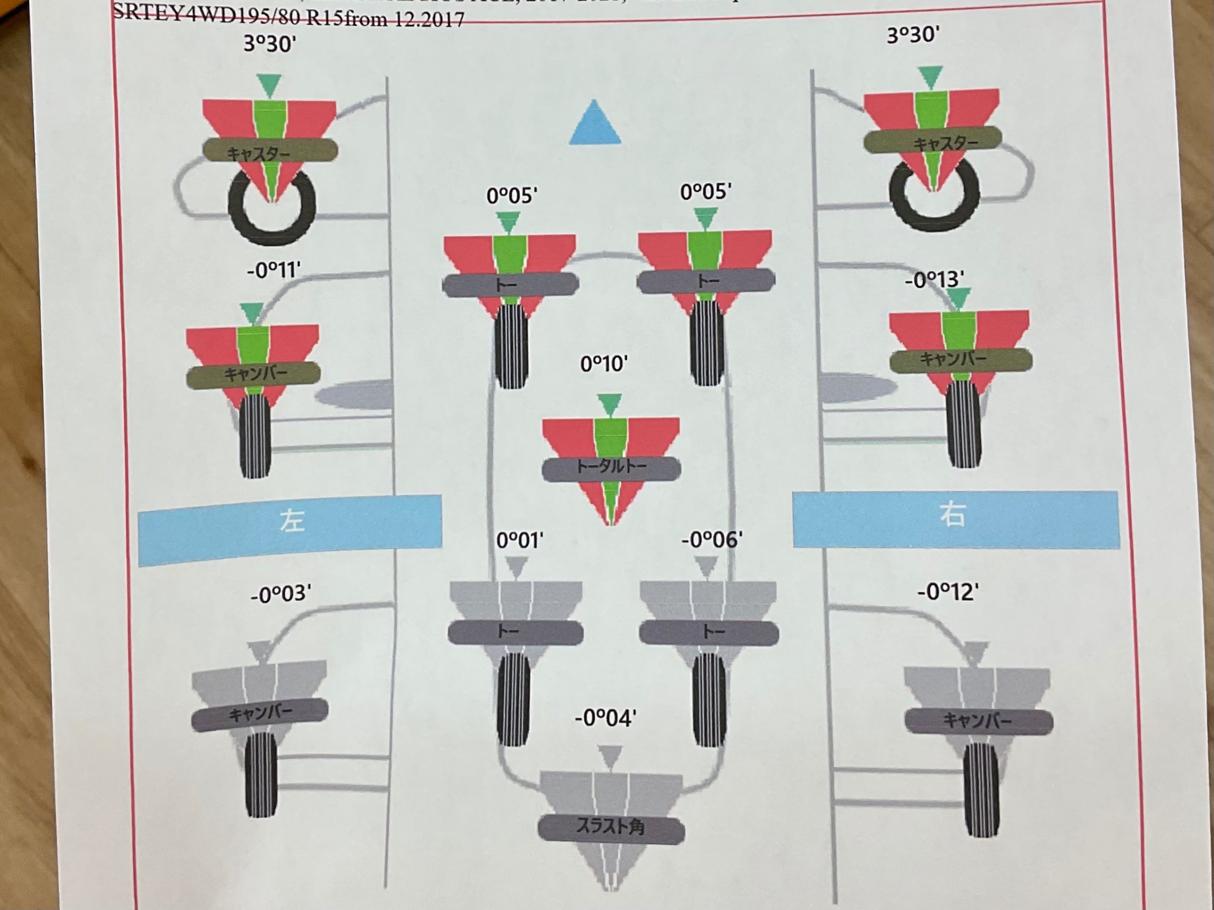 測定の結果、右フロントのトーがずれていることが分かりました。