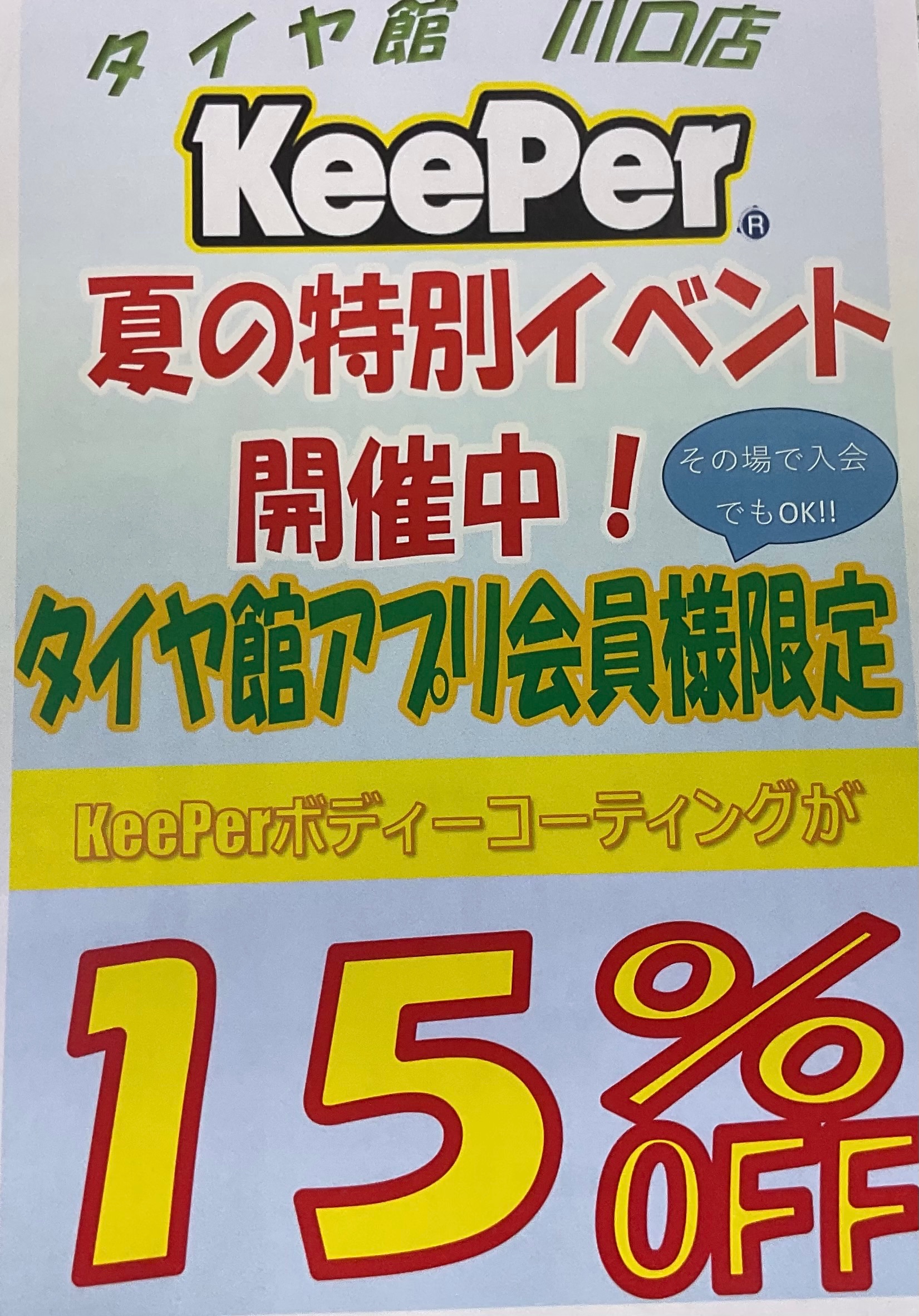 タイヤ館川口店では、7月のKeeperコーティングキャンペーンを実施しています。