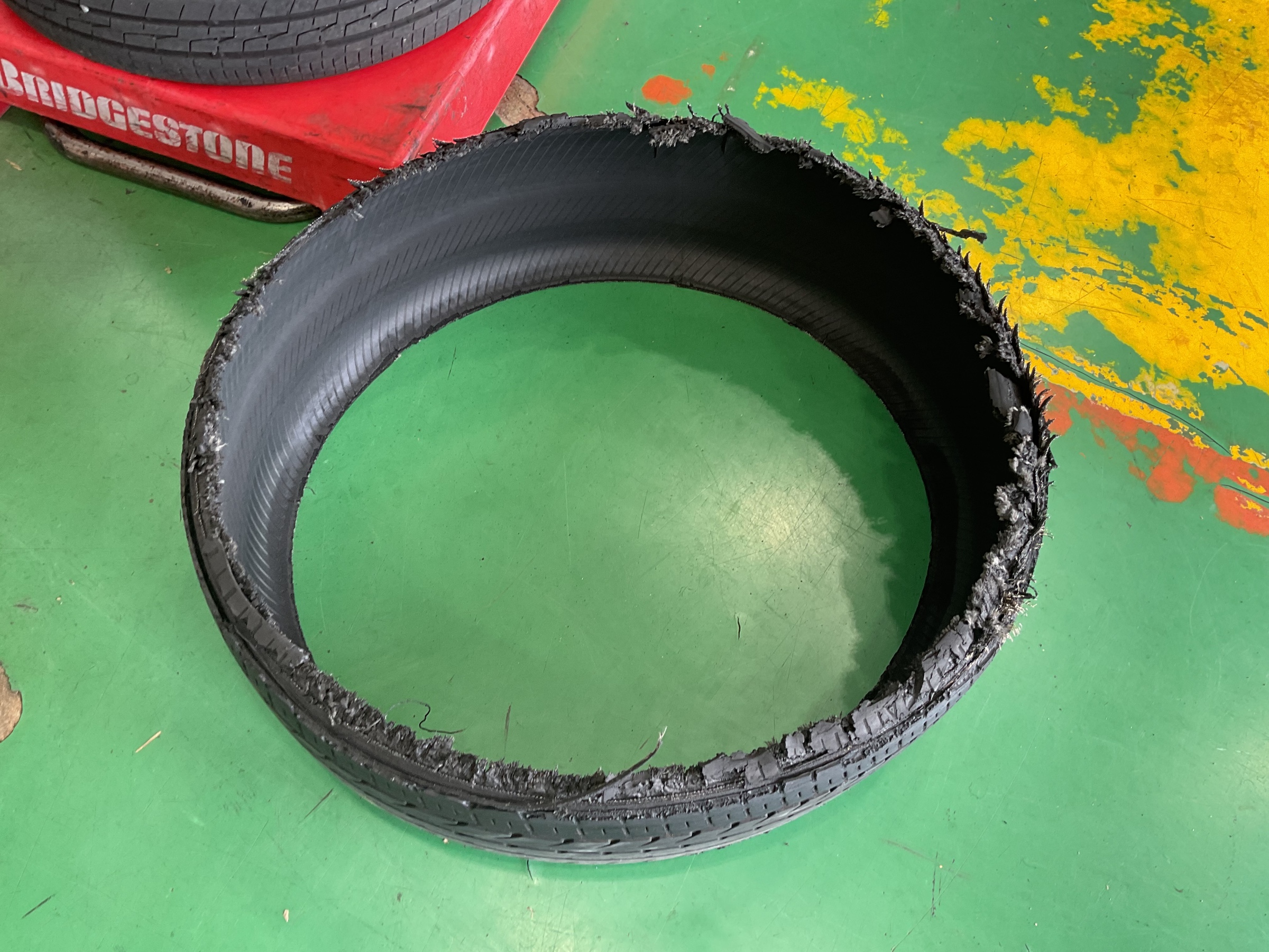 続いてキズやヒビの危険度を点検します。状態によってはバースト(破裂)の危険がある場合もあるので、縁石に強くこすってしまった時などは点検が必要です。