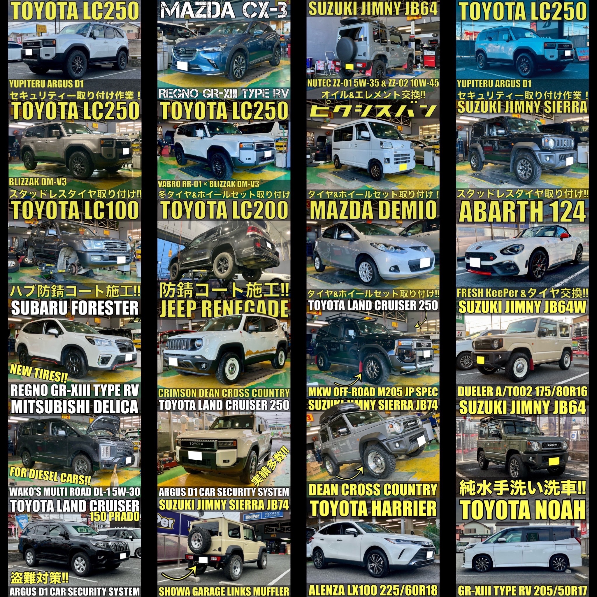 作業実績多数!タイヤ交換、ホイール交換、オイル交換、バッテリー交換、