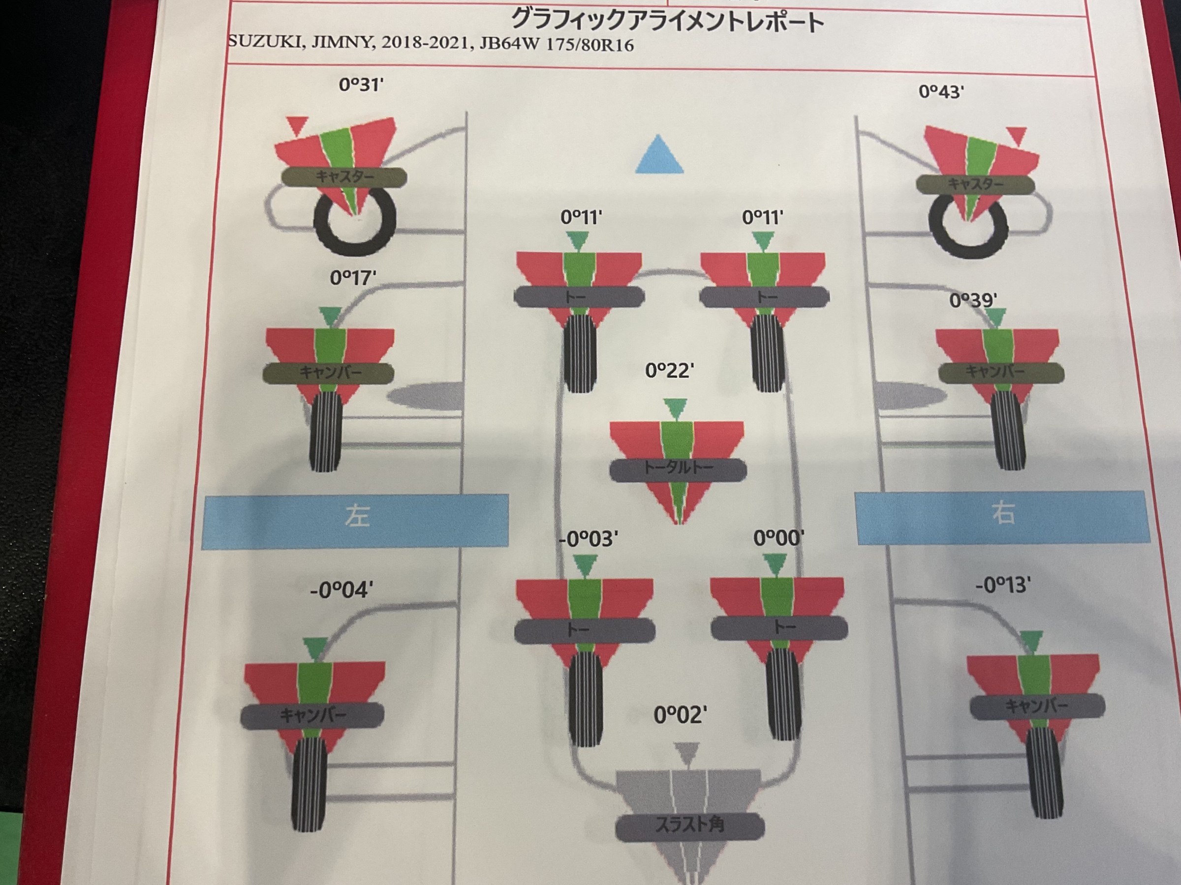 スズキ ジムニーJB64のアライメント測定と調整です。