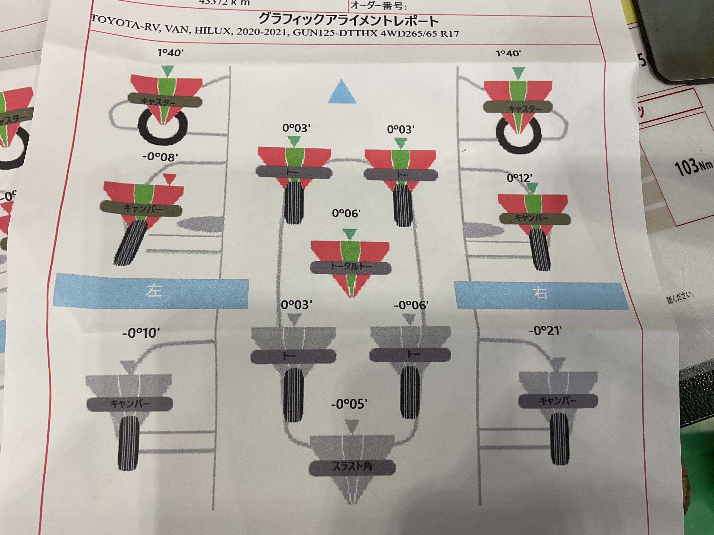 トヨタ ハイラックスのアライメント測定&調整作業です!