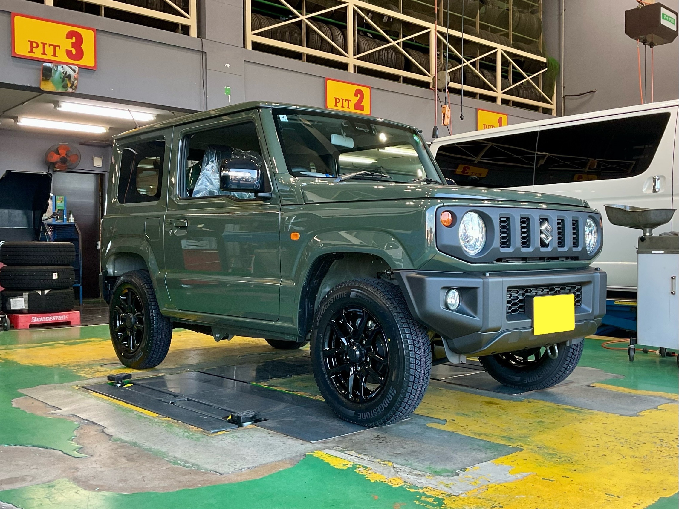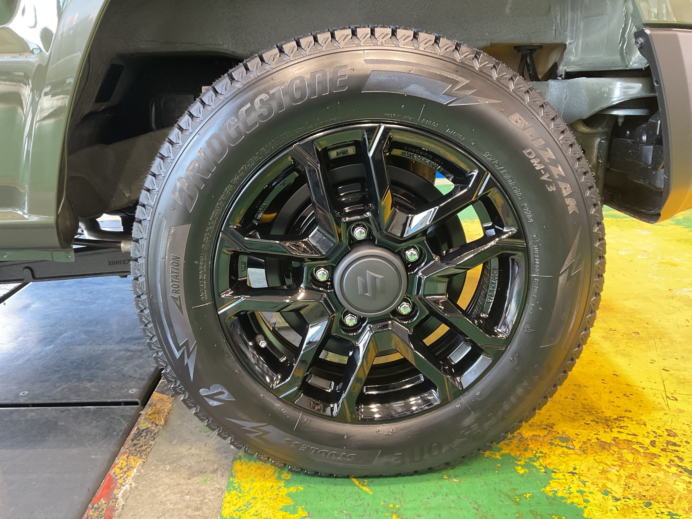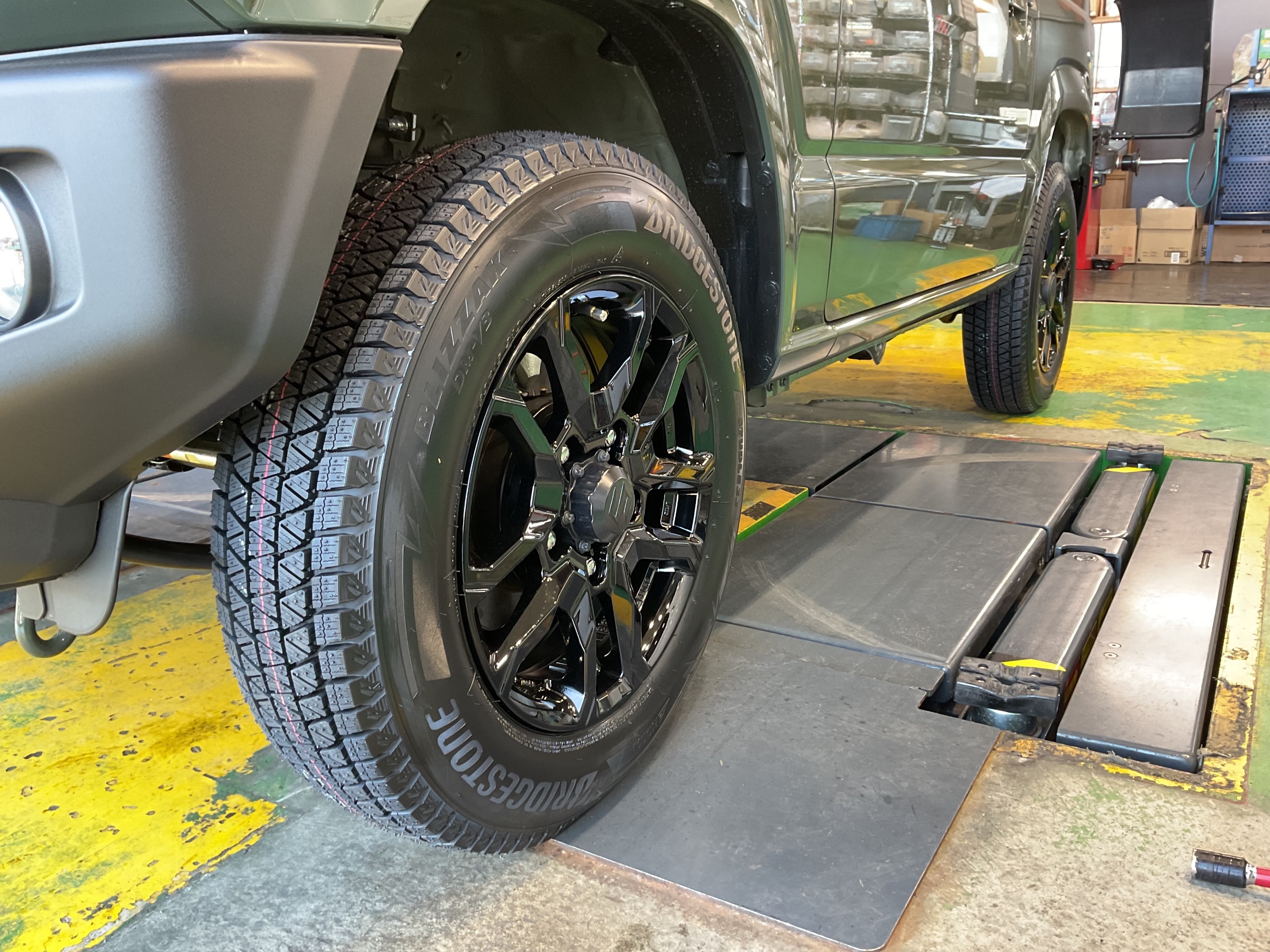 [おすすめ記事をPick up!] ジャングルグリーンにグロッシーブラックで冬タイヤもカッコよく!ジムニーにスタッドレスタイヤ取り付けです!