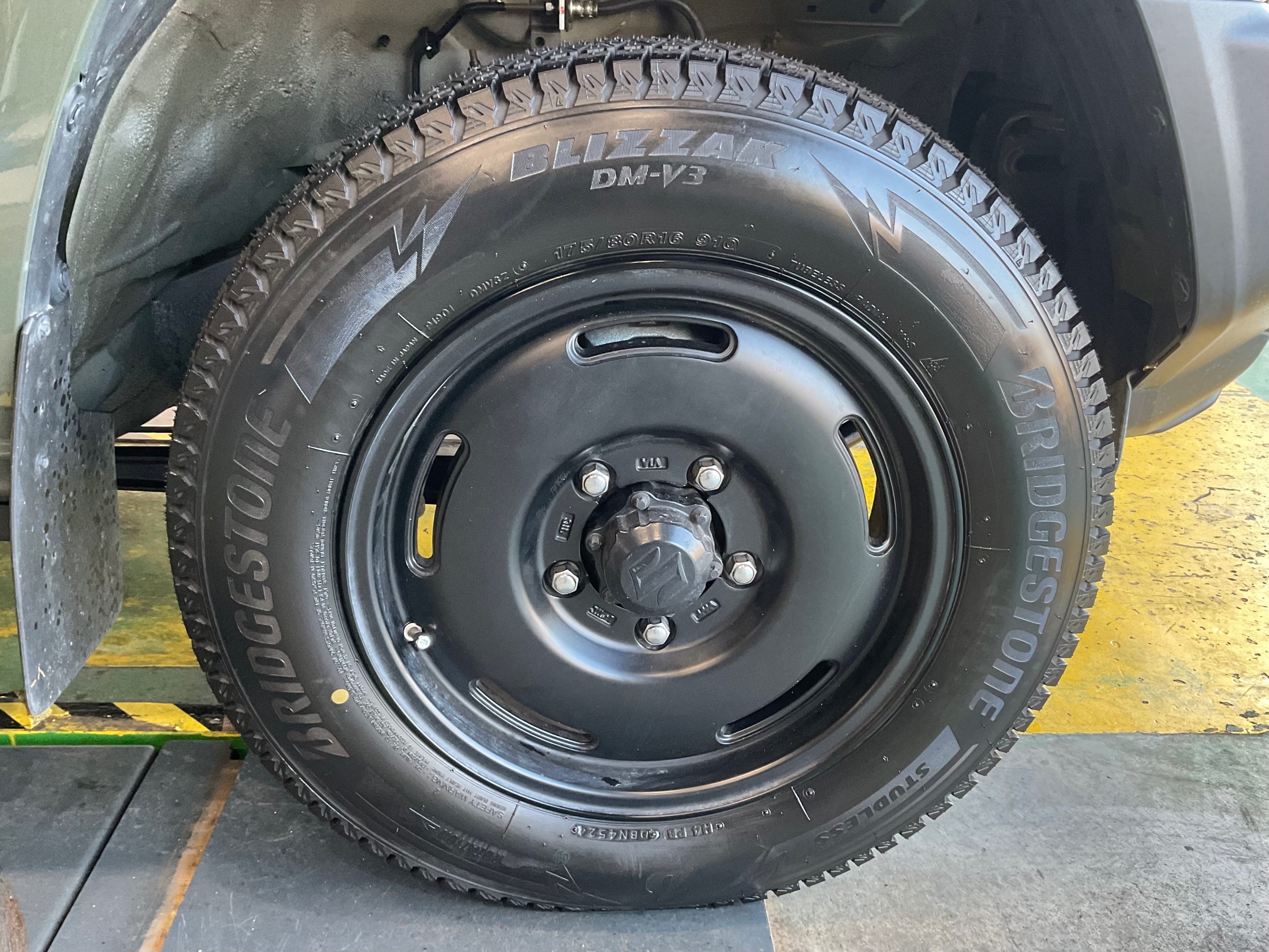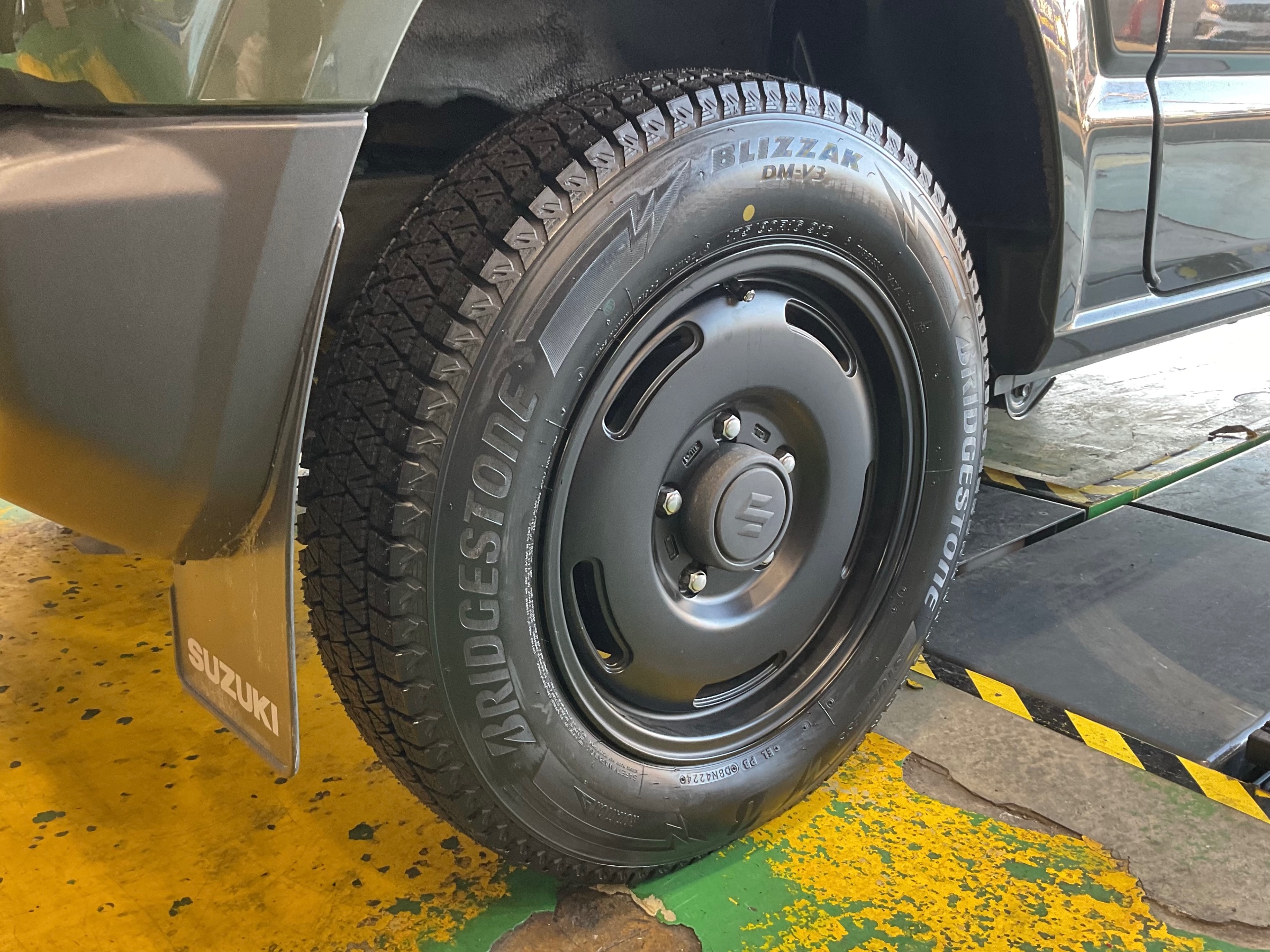 JB64に雪上性能に特化したスタッドレスタイヤ、DM-V3を装着です‼︎