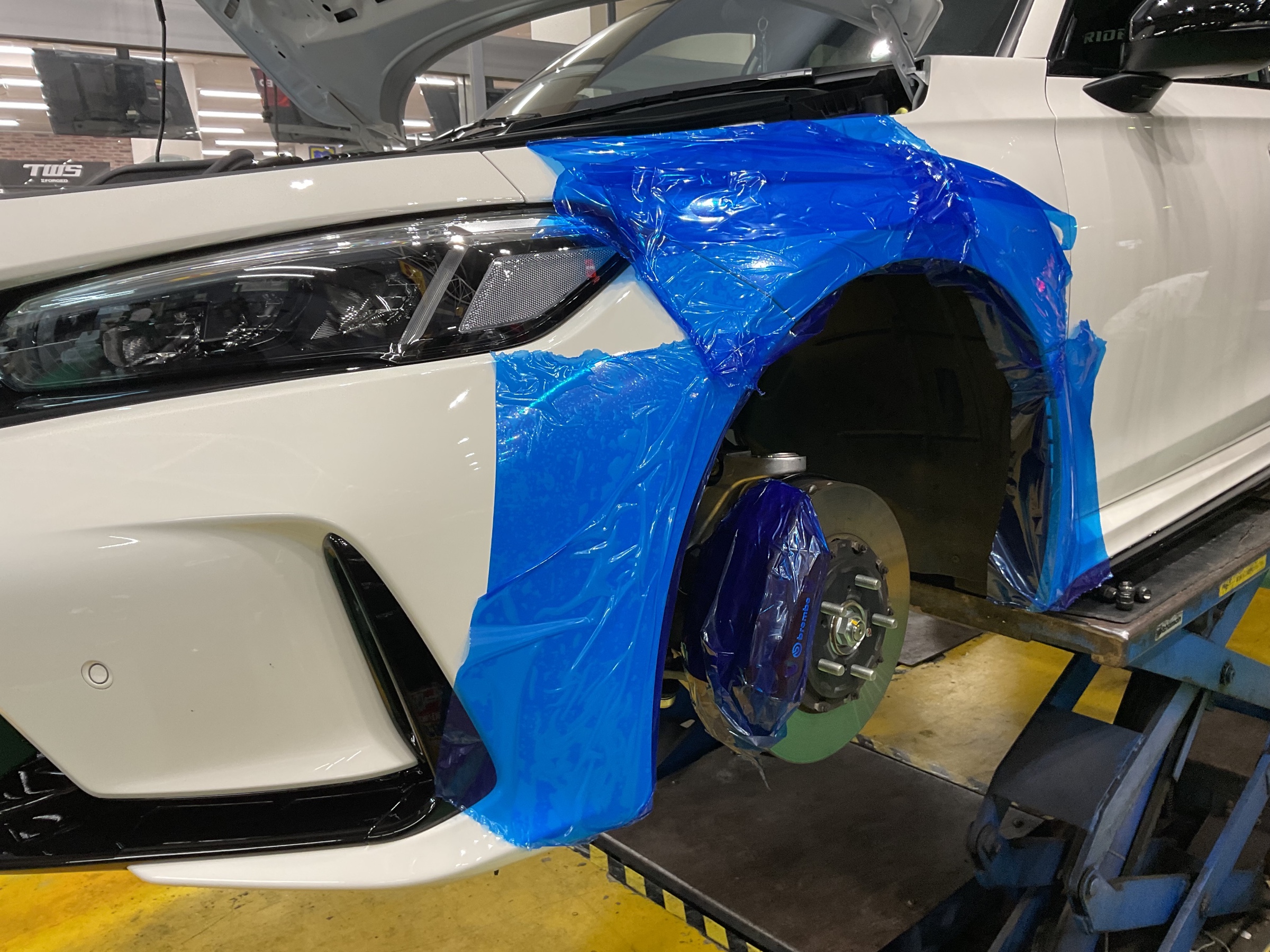 作業中は、しっかり保護テープを貼りお客様の大切なお車が傷つかないように作業しています!!