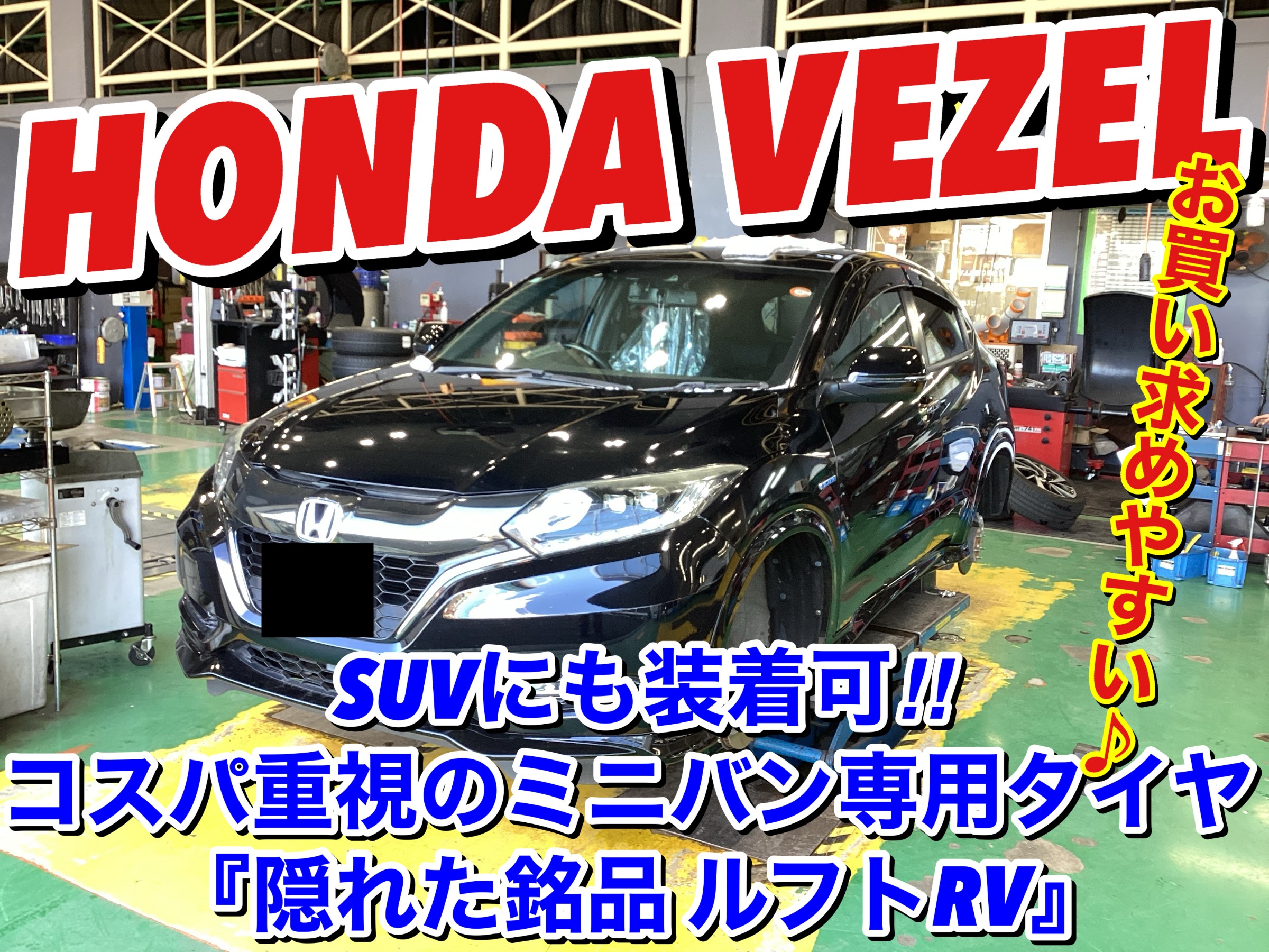 【隠れた銘品】ホンダ ヴェゼルにコスパ重視のミニバンタイヤ、ルフトRVのタイヤ交換作業です!