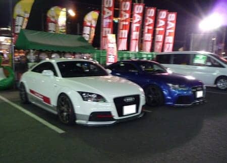 アウディ日和ww ポスト 2016年4月16日 こんばんわwwタイヤ館川口のスタッフ高橋です♪アウディTTRS(青いほう)に乗っている以前の店からのお客様がTTSのお客様をご紹介してくださいました♪これから張り切ってタイヤ交換!!といっても、今日はもう遅いので取り付けは火曜日です帰り際にエキゾーストサウンドが響き渡りましたが5気筒と4気筒で微妙に異なる音の具合がなんとも「萌えぇ」な感じでしたwww 担当:高橋