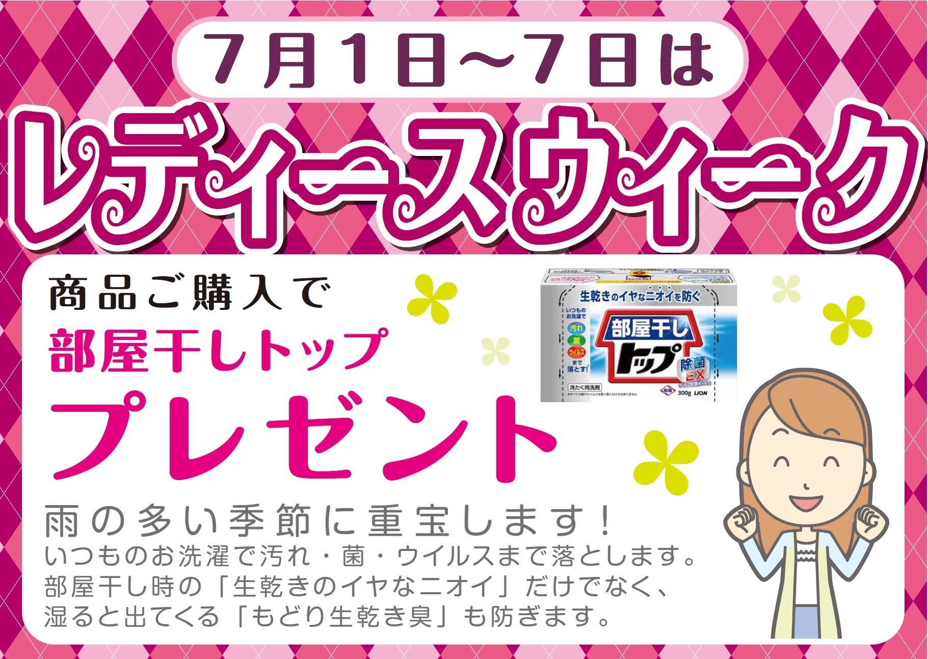 本日7月1日(日)~7月7日(土)までレディースウィークを開催致します!