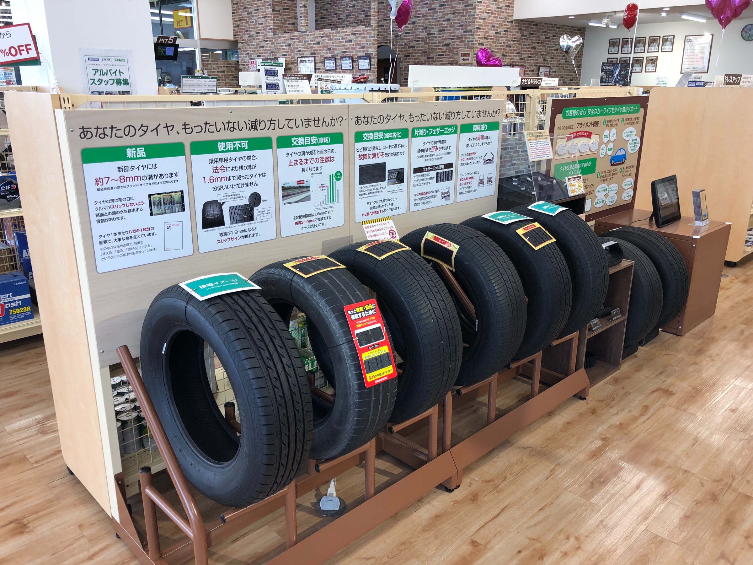 お客様のタイヤを点検し、店内でタイヤの摩耗状況をご説明します!