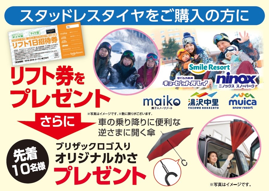 数量限定で《ブリザックロゴ入りオリジナルかさ》をプレゼント★