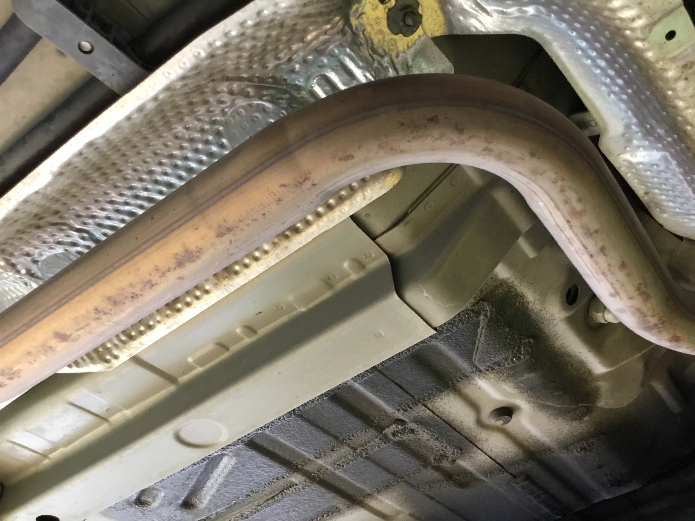皆様はお乗りのお車の下を見る事はほぼないかと思われますが下を覗いてみるとこのように錆てしまっていたりします。