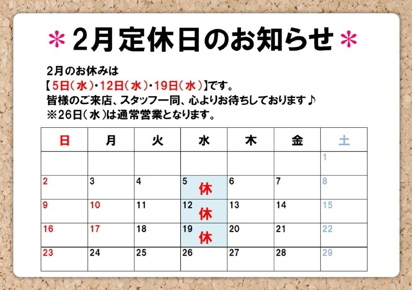 2月定休日のお知らせ ポスト 2020年2月19日 皆様こんにちは! タイヤ館川口店 スタッフの疋野です^^ 2月定休日のお知らせ ※月初の予定から変更がありました。 2月は【5日、12日、19日】がお休みです。 26日(水)は通常営業となります。 皆様のご来店、スタッフ一同、心よりお待ちしております♪ 担当:疋野