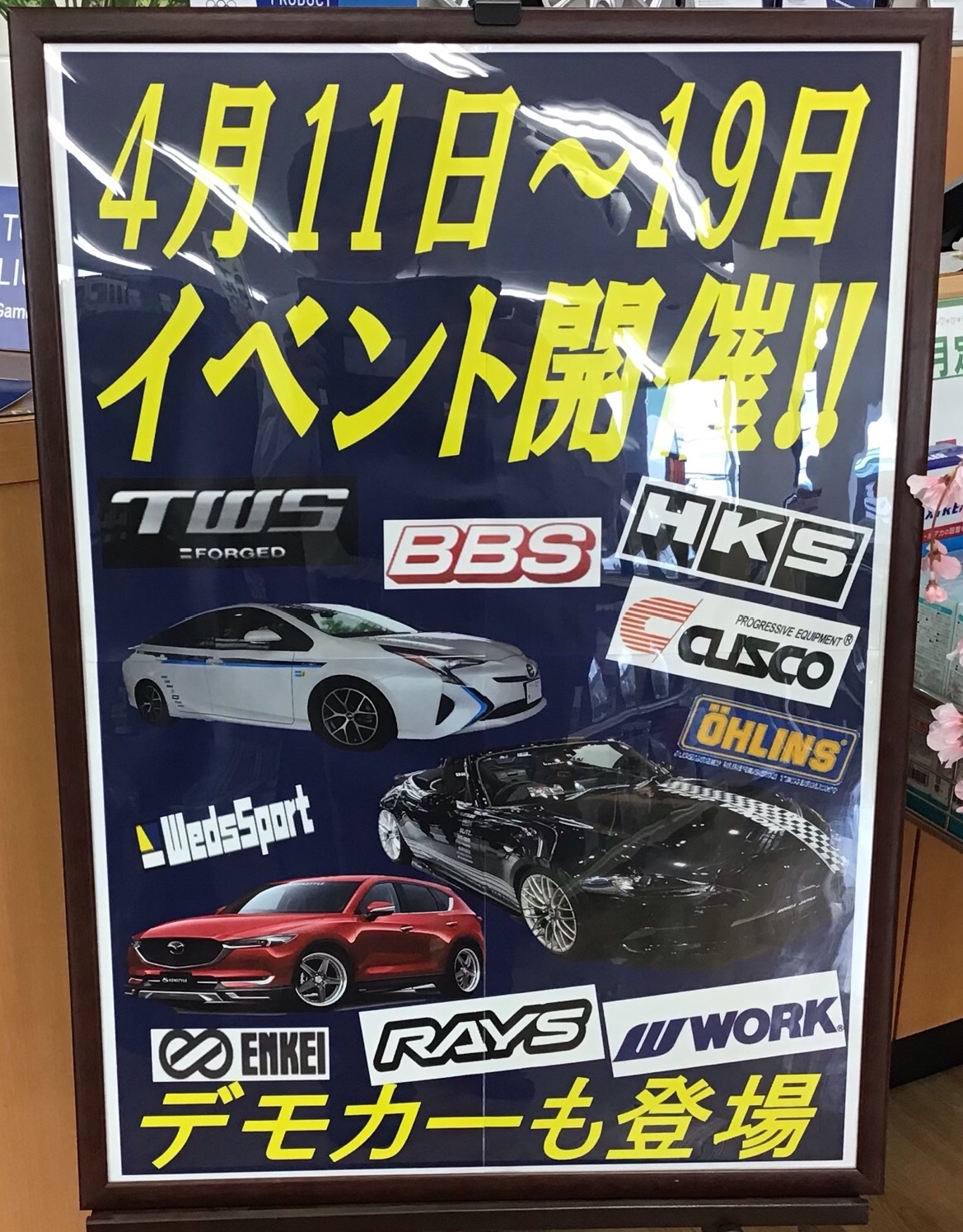 デモカーも来場します。ホイールも車高調もお買い得!!
