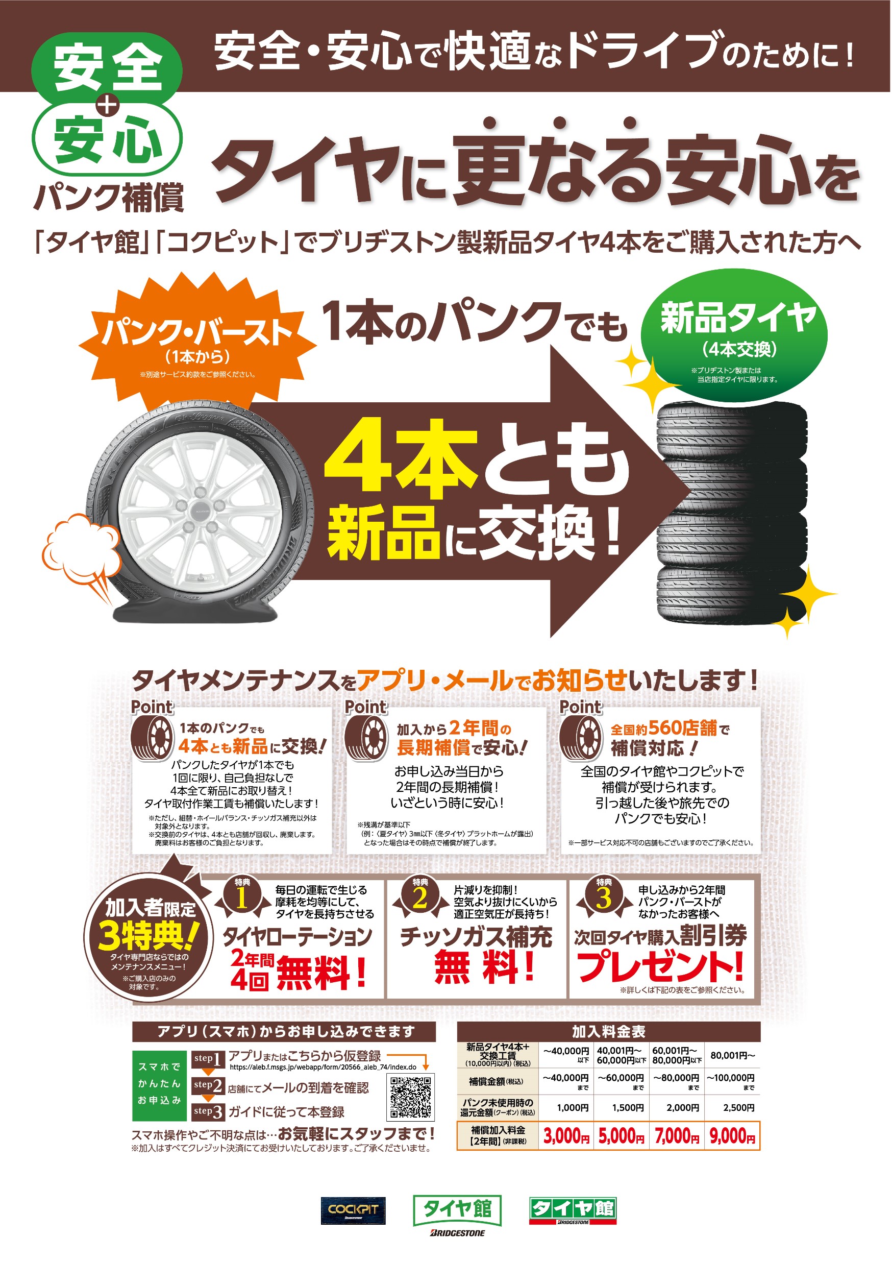 パンク補償4月1日より始まります。 ポスト 2020年3月27日 こんにちは。 4月1日より、ブリヂストン製新品タイヤ4本購入のお客様、パンク補償に加入できます。(有料) 保証加入料金は購入金額により異なります。 詳しくは、当店スタッフまで。 担当:佐藤