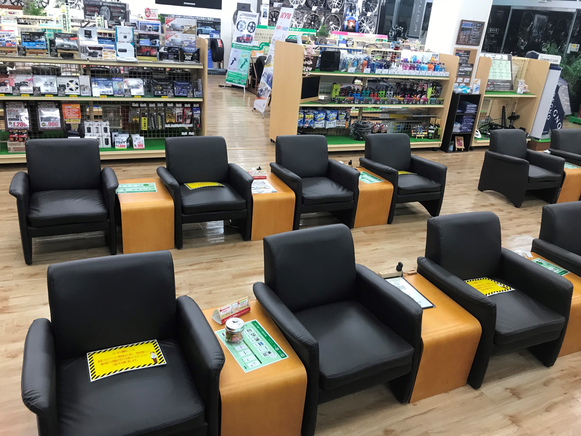 待合室も席を間引いて距離が取れる様に配慮しております