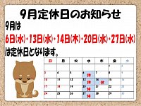 こんにちは。 タイヤ館川口店です。 いつも当店のホームページをご覧いただきありがとうございます。 8月定休日のお知らせです。 9月は6日(水)、13日(水)、14日(木)、20日(水)、27日(水) が定休日となります。 ご迷惑おかけいたしますが、何卒ご理解頂きます様、よろしくお願い致します。
