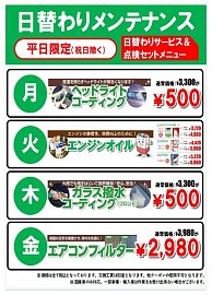 【平日限定】とっても得な日替りメンテナンス始めました♫