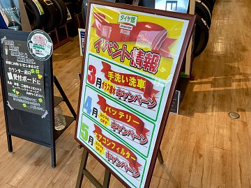 皆さんこんにちは!タイヤ館川口店です。 本日は3月、4月、5月のお得なキャンペーン情報をご紹介させていただきます。 3月のキャンペーンは手洗い洗車キャンペーン! 手洗い洗車をされたお客様にガラス撥水(フロント)を無料で施工いたします。 4月はバッテリーキャンペーン! バッテリーはお車にも...