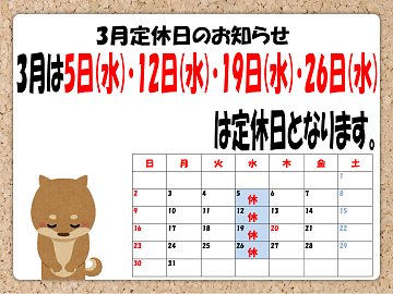 3月定休日のお知らせ