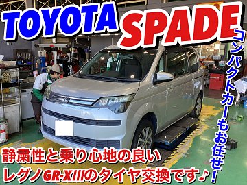 タイヤ館川口のホームページをご覧いただきありがとうございます。 本日のタイヤ交換は、トヨタ スペイドにレグノGR-XⅢを装着しました。