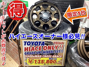 【限定1台!!】ハイエースオーナー様必見! お買い得タイヤ+ホイールセットのご案内です(*'▽')