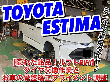 【隠れた銘品その2】トヨタ エスティマにミニバン専用タイヤ ルフトRVⅡの交換作業とお車の骨盤矯正「アライメント調整」作業です(^^)/