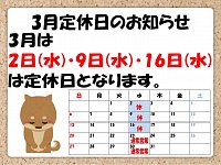 3月定休日のお知らせ