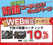 こんにちは。 タイヤ館 川口店です。 当店では3月限定!下回り防錆コーティングキャンペーンを開催中! 雪が降った今年は要注意! 融雪剤などが原因で錆につながってしまうことも。。。 是非一度お車長持ちのために、防錆コーティングを行いませんか? 期間中はクーポンもご利用いただけます! ご利...