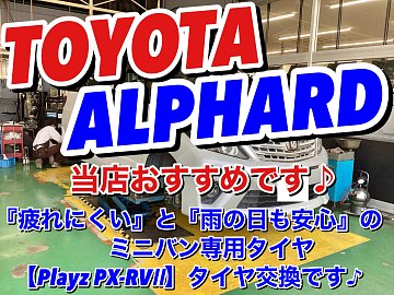 タイヤ館川口のホームページをご覧いただきありがとうございます。 今回のタイヤ交換作業は、トヨタ アルファードにミニバン専用タイヤプレイズPX-RVⅡを装着します(^^♪