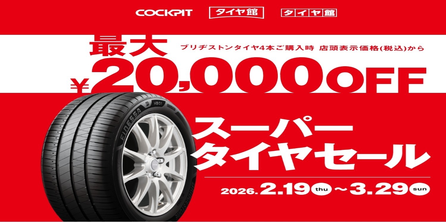 皆さん、こんにちは!! タイヤ館川西です! …急なバッテリートラブル… …いつ起きるかわかりませんね… そこで! タイヤ館川西では無料バッテリー点検実施中! スーパータイヤセール開催中! タイヤ館スーパータイヤセール!! 開催期間 2026年2月19日(木)~2026年3月29日(日)まで タイヤクーポン詳細 ...